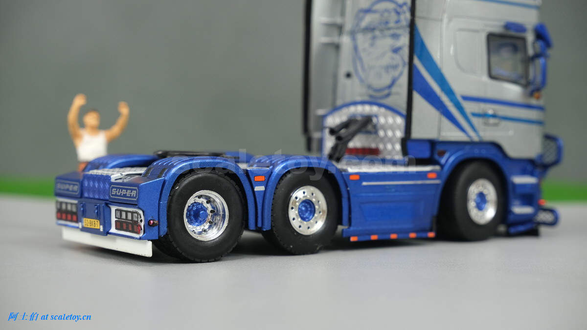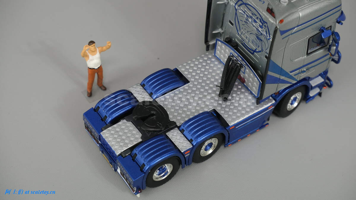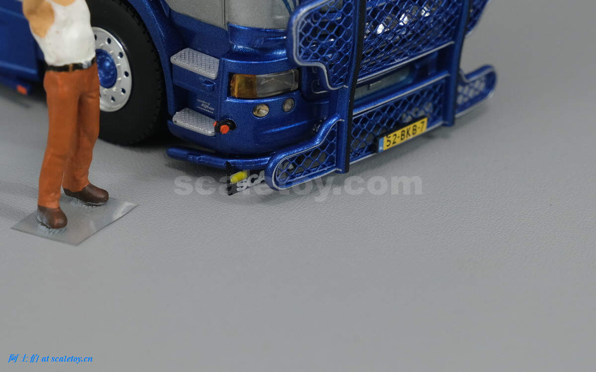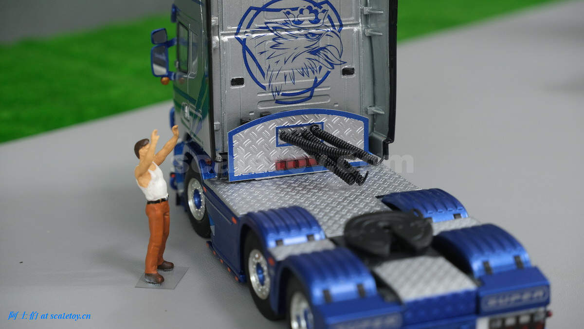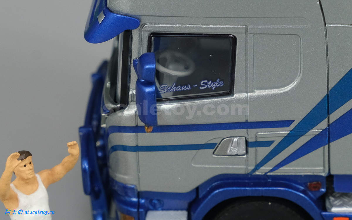 驾驶室背后是斯堪尼亚的鹰头,上方是独立结构的灯组和车辆牌照号。