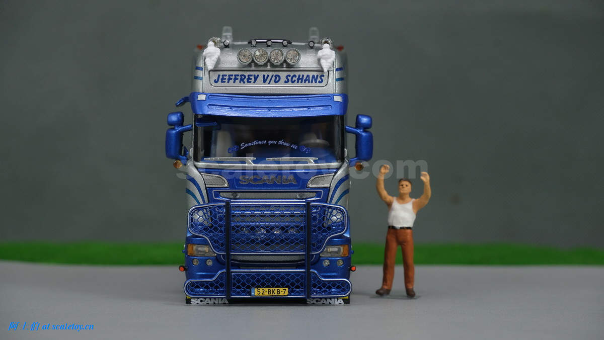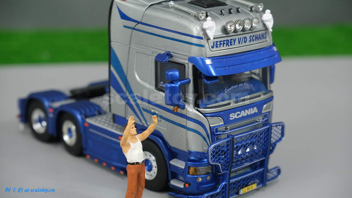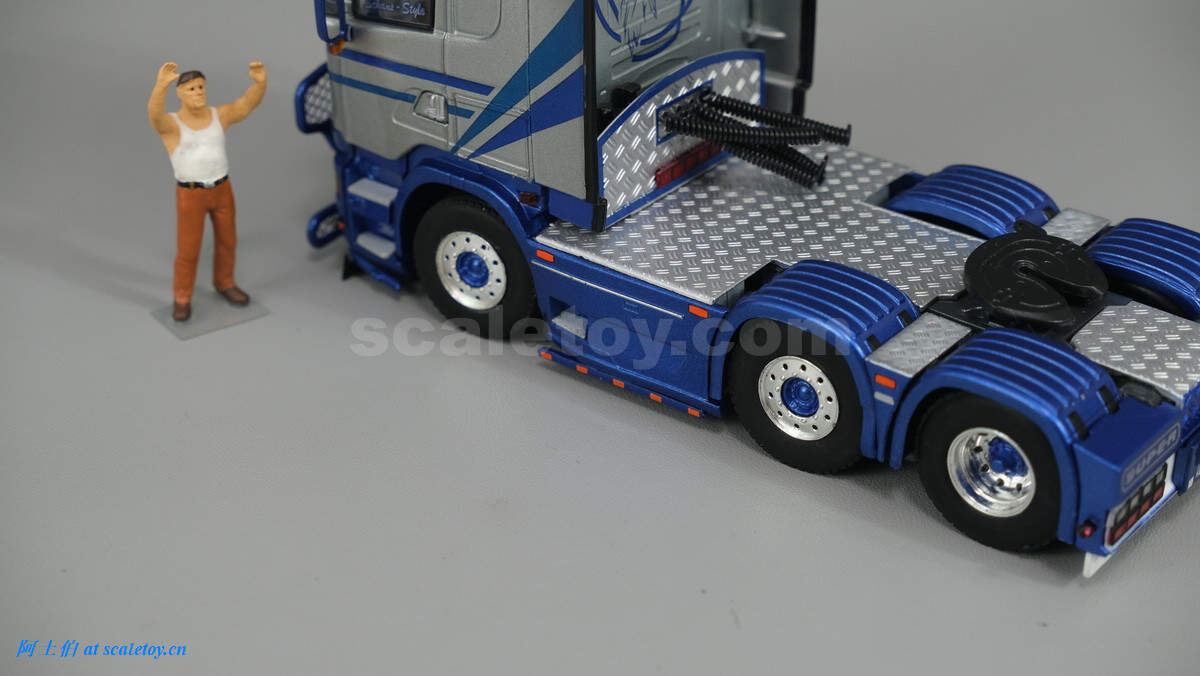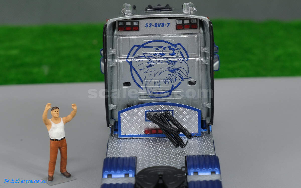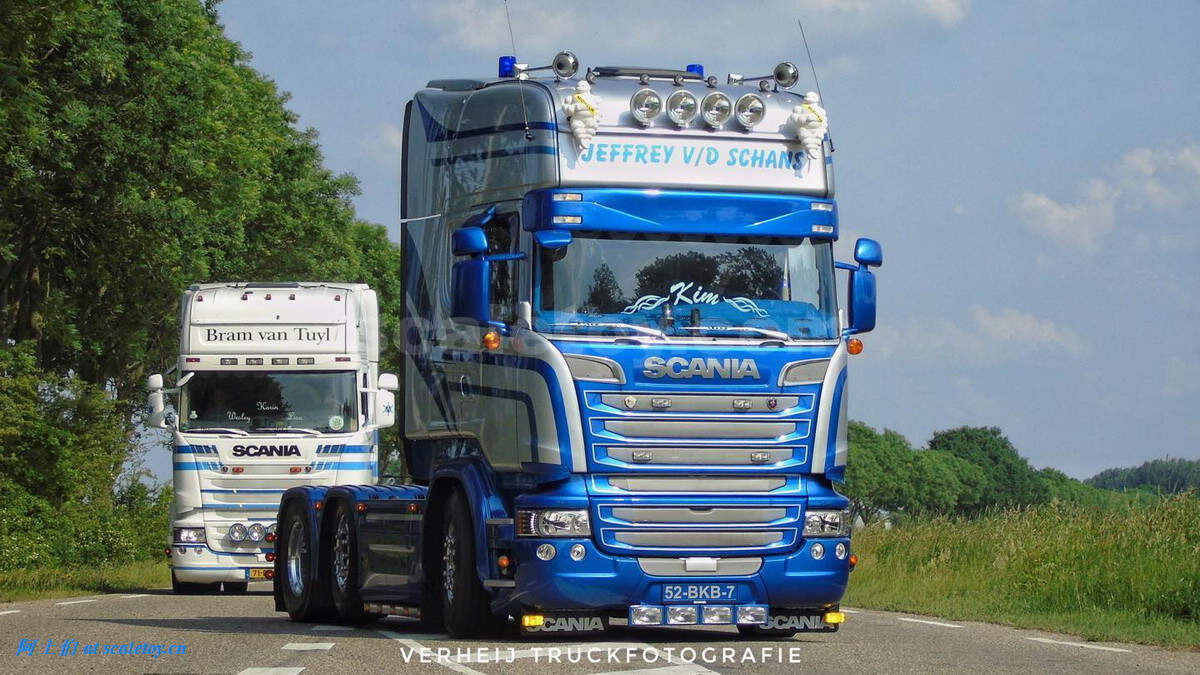 驾驶室背后是斯堪尼亚的鹰头,上方是独立结构的灯组和车辆牌照号。