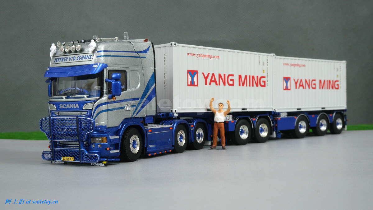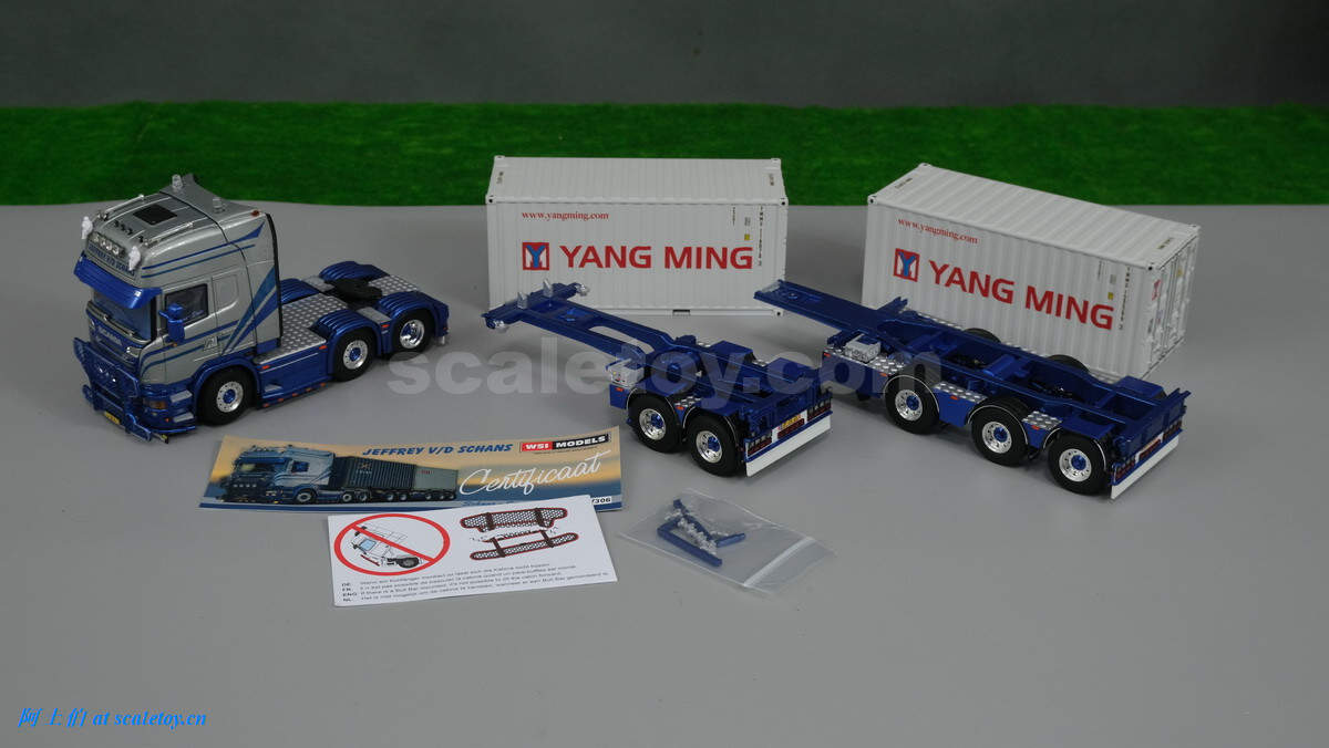 [WSI] SCANIA STREAMLINE TOPLINE 6X2 TWIN STEER with BROSHUIS 2+3X 2 CONNECT COMBI TRAILER – JEFFREY v.d. SCHANS and 2 20ft container YANG MING 斯堪尼亚拖头挂BROSHUIS组合式集装箱挂车 荷兰JEFFREY v.d. SCHANS公司涂装