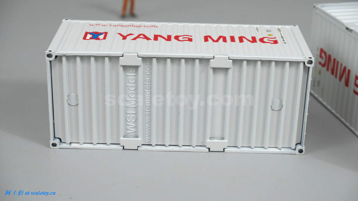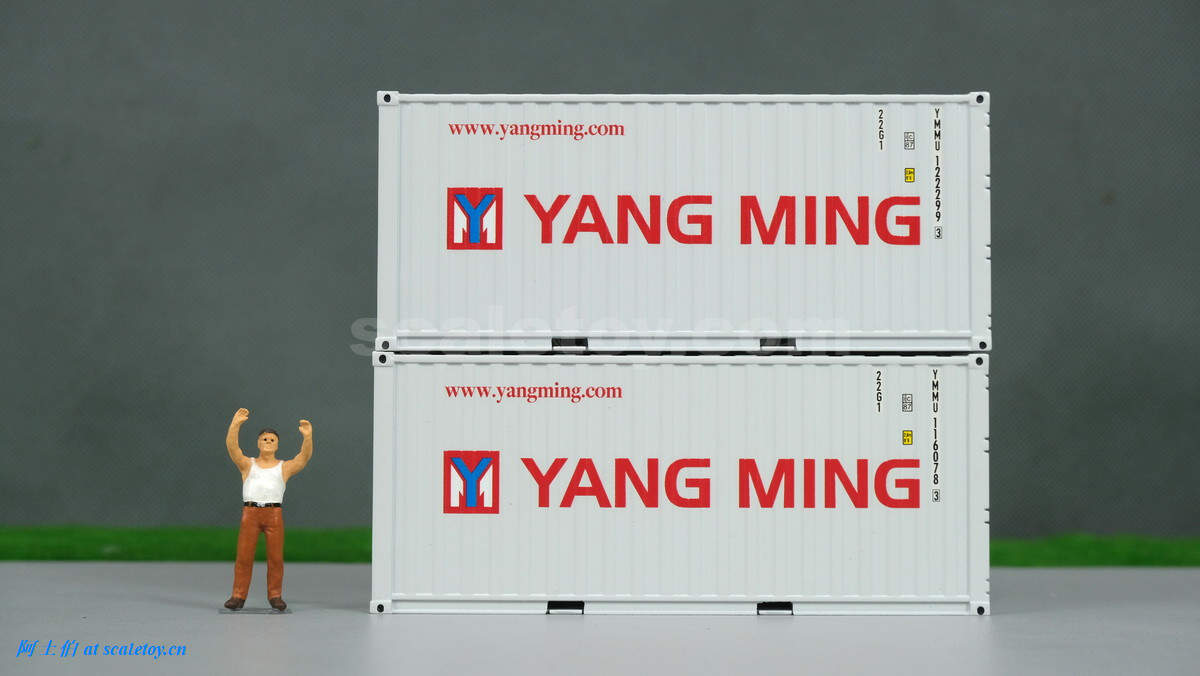 搭配两个YANG MING的20呎集装箱。阳明海运股份有限公司成立于 1972 年 12 月 28 日。总部位于中国台湾的基隆港。截至2020年10月,阳明海运拥有90艘营运船舶,承运能量达703.7万载重吨/62.2万TEUS,船队以货柜船为主。在全球集装箱海运榜单中排名进入前十。