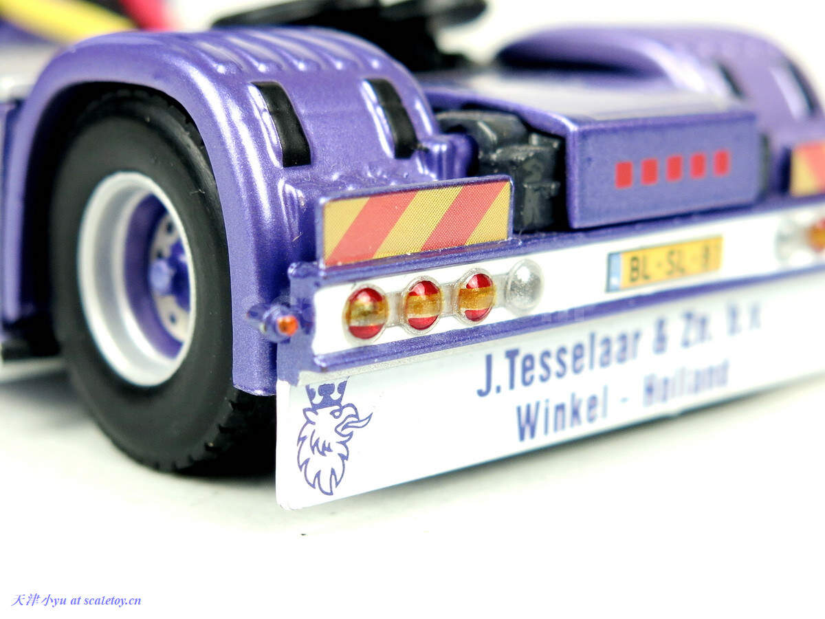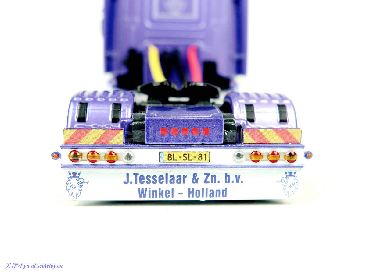 拖头 tractor[wsi] SCANIA R4 TOPLINE 4X2 (J. TESSELAAR涂装) 作者 天津小yu 2023年1月10日 1 分钟阅读 0 这次带来的也是一款比较骚气的车头,涂装来自J. TESSELAAR 涂装也比较简洁,底色就是金属紫色,再搭配简单的线条和文字 车型也都比较老了,九十年代的车型 下面看模型,这组照片拍的不好,大家见谅 头顶的小灯,质感很棒 前脸部分 各种车灯都做了透明件处理 尾灯质感也很棒 发动机细节 标签: SCANIATESSELAARTOPLINEWSI