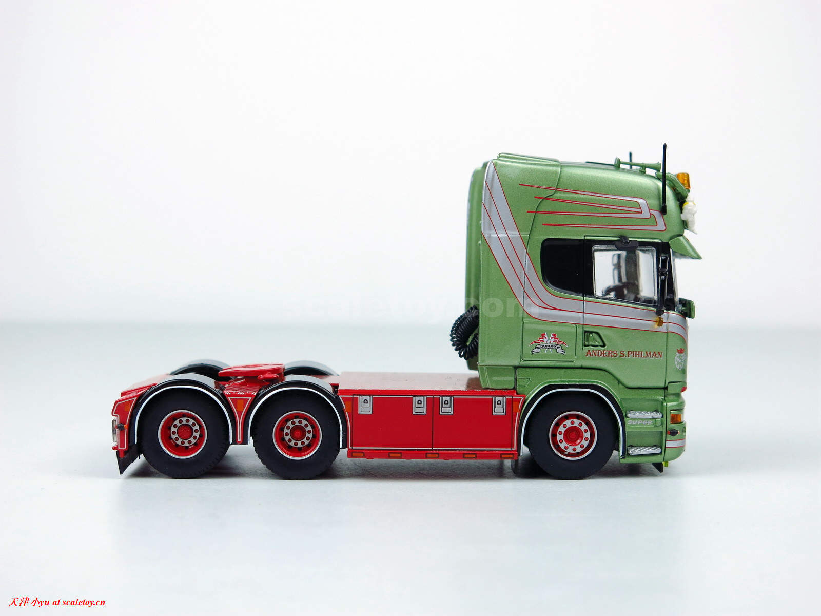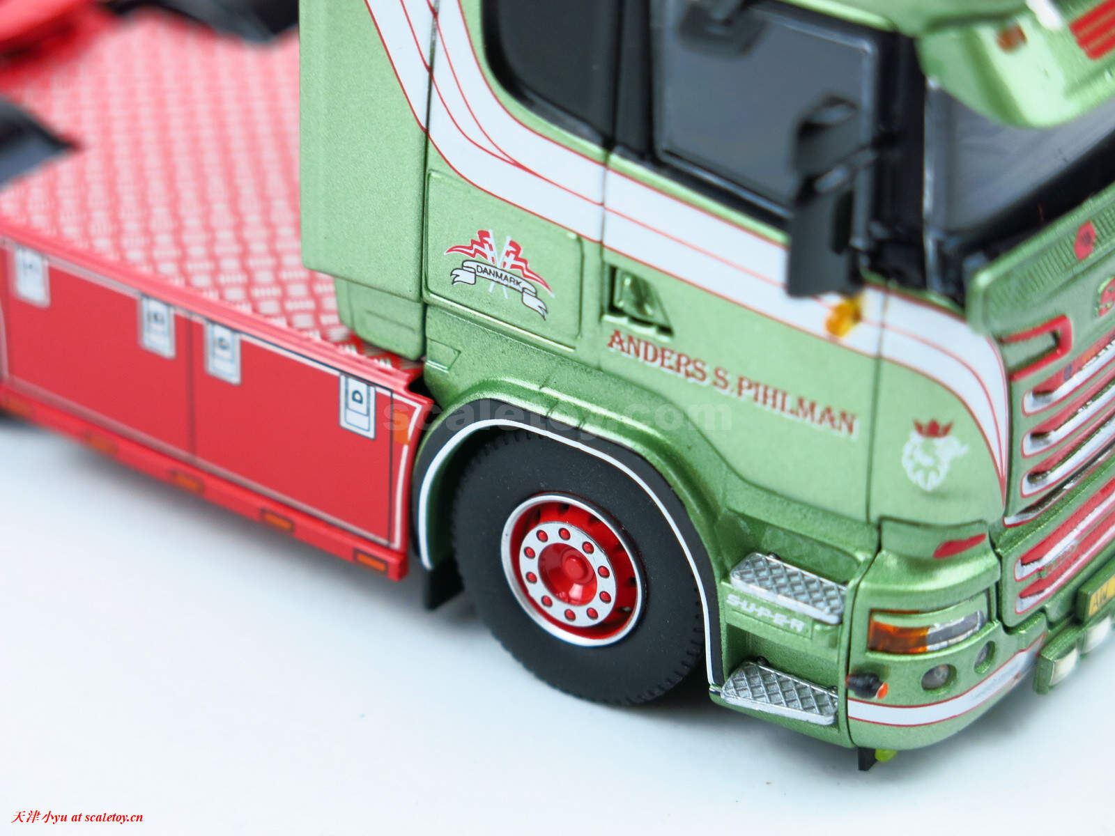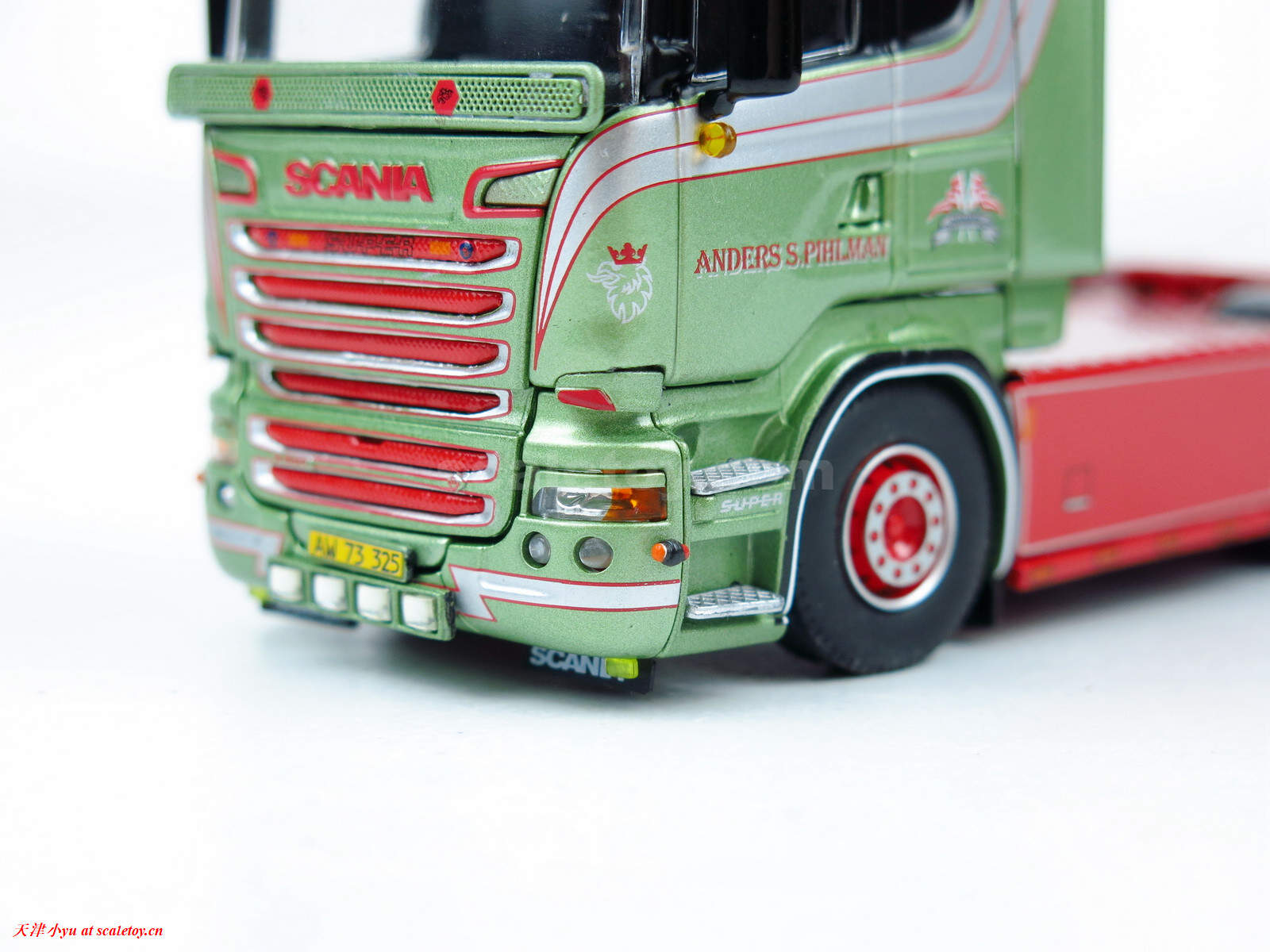 拖头 tractor[tekno] Scania R-serie (R-580) Streamline Topline 6×2 sleepas trekker(Anders S. Pihlman涂装) 作者 天津小yu 2023年3月10日 1 分钟阅读 0 这次带来的是tekno在2021年出的车头,涂装是Pihlman Anders S,这可能是个人公司就这一辆车,找不到公司网址,也搜不到这个涂装其他的车 涂装方面,虽然也是“赛狗屁”的颜色,但是与英国传统的大红大绿的配色完全不一样,颜色还是比较清爽的 模型制作方面,秉承着tekno的一贯水准,漆面润滑光泽,文字和各种条纹印刷很清晰 顶部的探照灯和工程警示灯 各种小细节处理的比较到位,小灯都是单独的透明件 驾驶室后部用蚀刻片做了造型 尾灯处 爪纹板的细节 标签: Pihlman AndersSCANIATEKNO