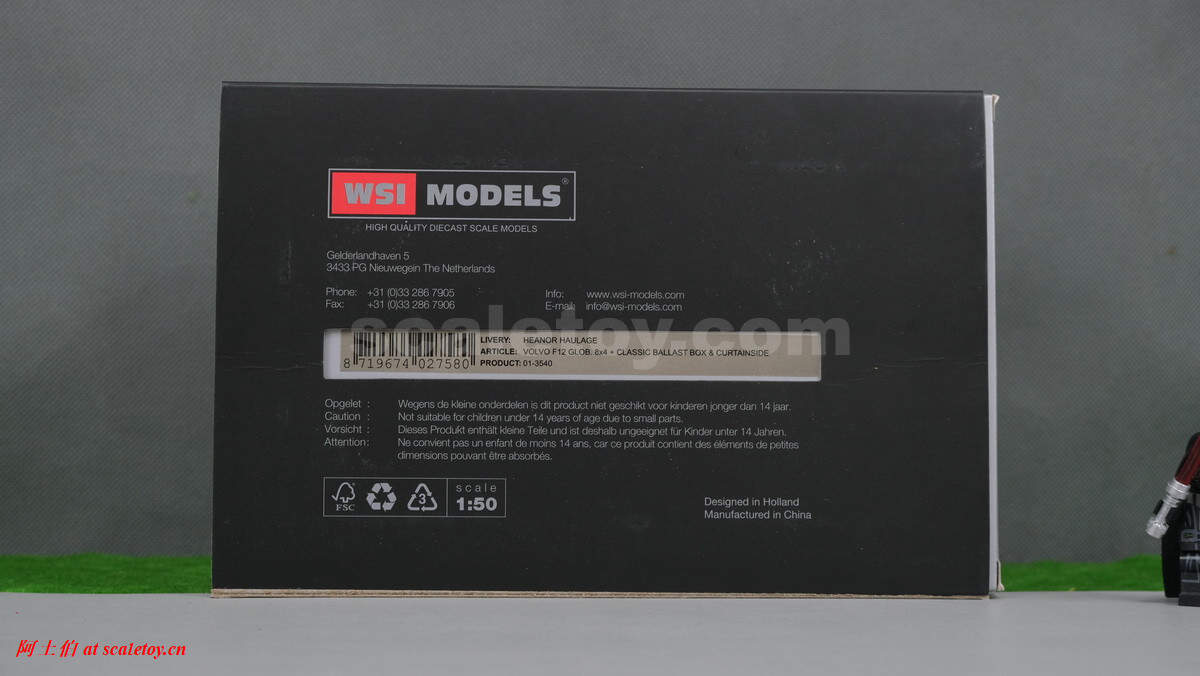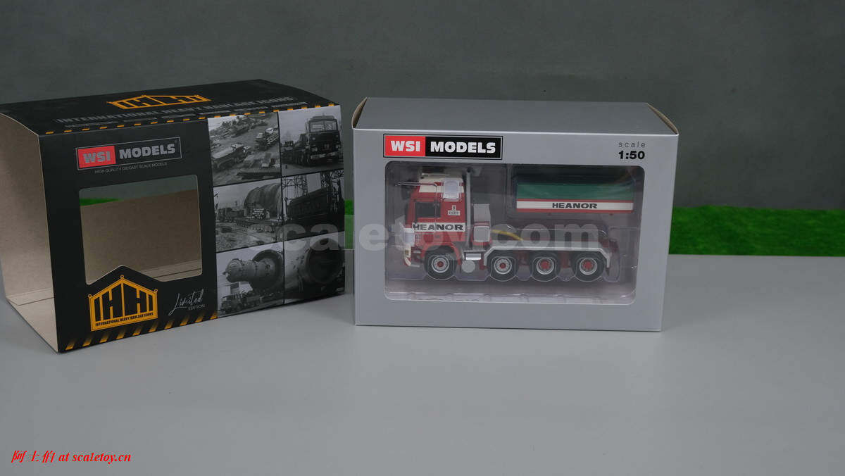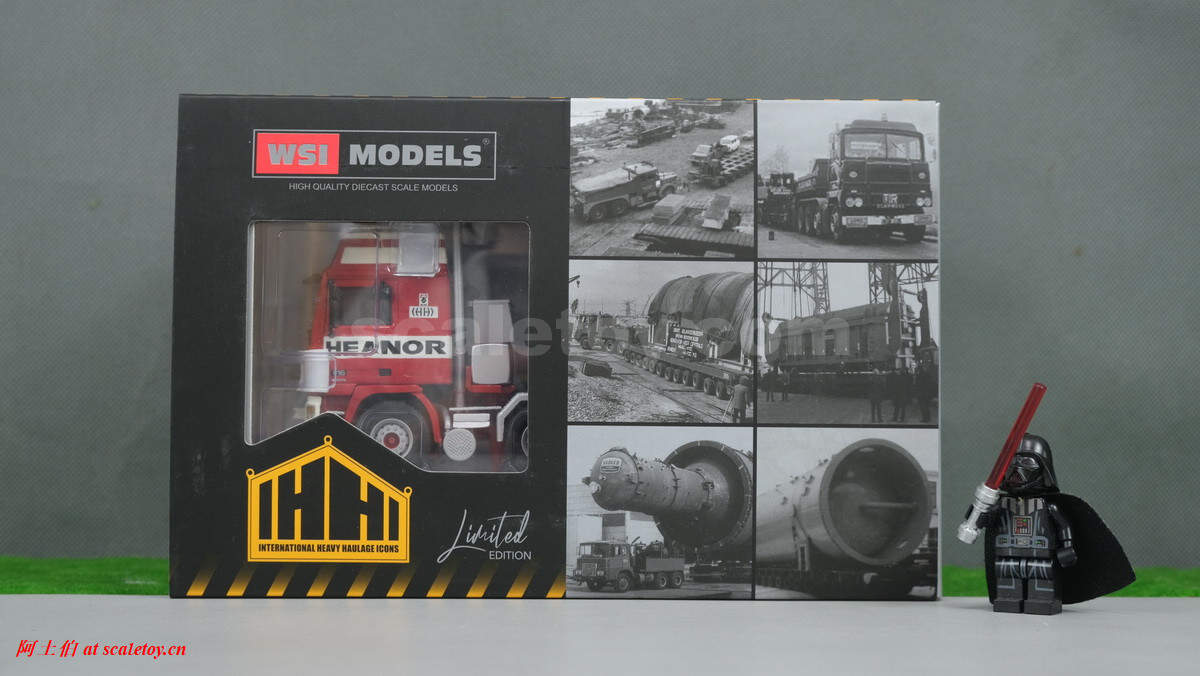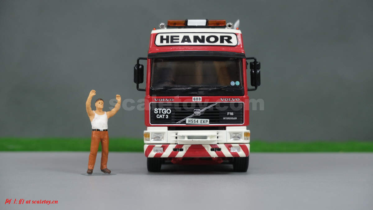 今天介绍的模型是公司的一台沃尔沃F16的GLOBETROTTER 8X4拖头,带压载箱。这款模型的包装是一个特别的IHHI系列纸盒,意思是跨国特殊运输。