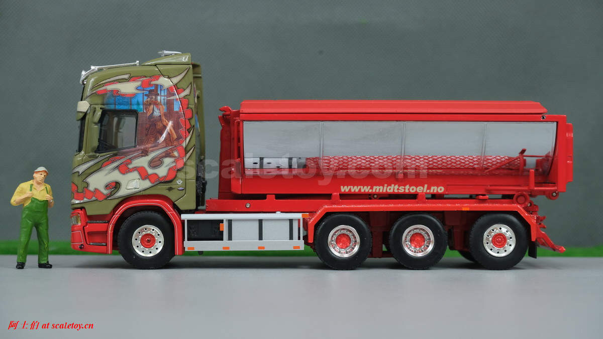 [WSI] SCANIA R HIGHLINE CR20H 8X4 RIGED TRUCK HOOKLIFT SYSTEM + HOOKLIFT CONTAINER ASPHALT – MIDTSTOL 斯堪尼亚卡车带HOOKLIFT甩箱系统及沥青槽罐 挪威MIDTSTOL公司涂装