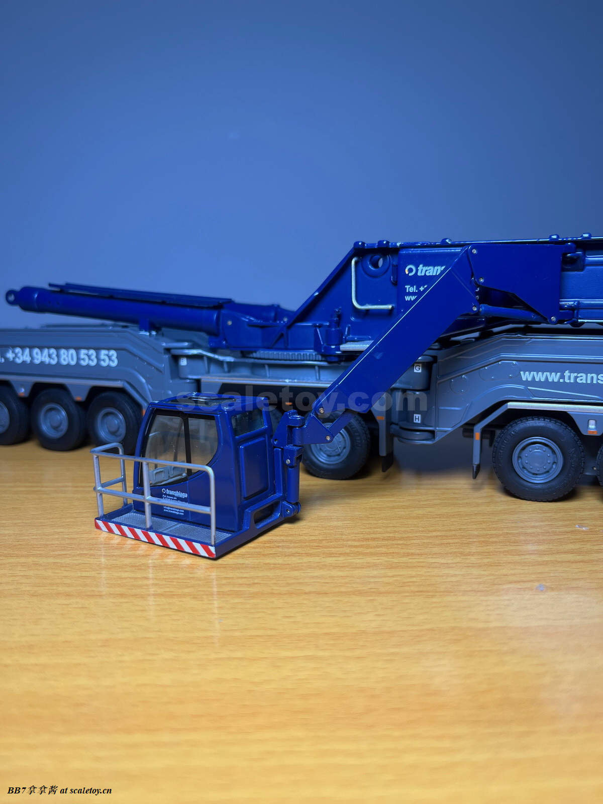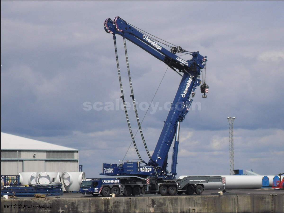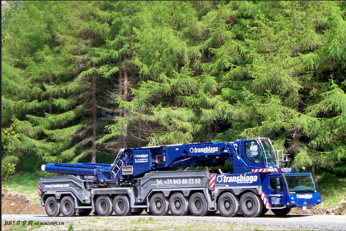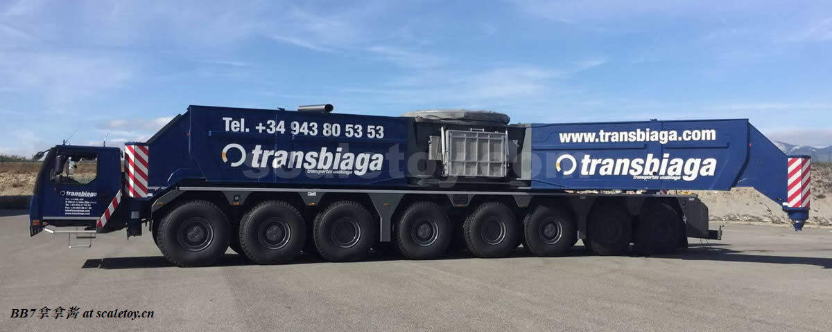 现在来看一下将要评测的这台Transbiaga的11200实车。Transbiaga是一个成立于1981的西班牙家族企业,业务以运输和吊装为主。虽然说模型这个涂装挺冷门的,但是这个公司貌似实力不容小觑,运输方面有一支由50台车头,250辆挂车组成的车队;吊装方面车队从100吨级到1200吨级有49台各种起重机,桁架吊为主,最关键的是,有5台lg1750(惊)!!!这实力相信大家懂得都懂了(笑),相比lg1750,11200就是个提鞋的。放一个网站在这,大家去看看,一定会爱上这个涂装,这个蓝色和sarens的比也有一种另类的美。
