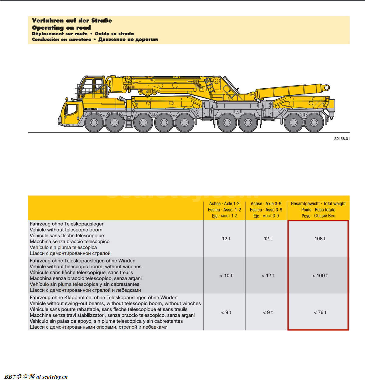 顺带一提,为了特别适应日本的法规,ltm11200还有7轴下车加后两轴可分离小车的日本定制版本ltm11200nx,可分离的后两轴不具备主动转向功能。可以看到日本的法规轴重不能超10t,总重不能超36t,那么拆除上车和支腿以后应该就能满足这个严苛的法规了。