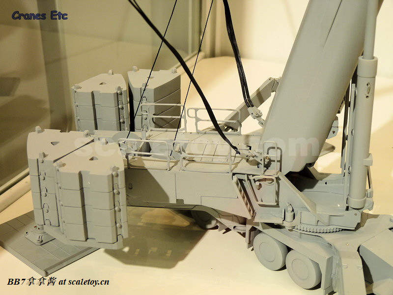 我个人认为,这是一款比较平衡的模型,整台车突出细节与把玩的平衡。这是一个正确的,适合吊车模型的思路,毕竟起重机模型有展示工况的需要,需要能适当的把玩,不能完全变成一个树脂静态模型了(对说的就是你,imc的垃圾树脂ak680,要细节没细节,要把玩没把玩!!)。当然,私人的说我还是觉得11200细节太少了,蚀刻片,分件,镂空,管线和移印,因为模型细节永无止境!!我个人的建议是在保持目前结构强度的同时加入更多细节,最重要的一点是不能阉割功能,这是所有工模最大的忌讳!阉割功能包括省略实车机构(吊耳,可拆卸卷扬,可分离上下车,可分离转盘,自提升配重,可分离步道板,可拆卸履带,完全拆卸为运输状态),不出实车配件(比如配重延伸段,支腿垫板,履带吊起臂支腿,各种臂头,桁架变径节,吊钩,塔况,桁架增节),使用铆钉进行不可拆卸连接,限制臂架角度,限制工况组合。大家仔细思考一下,多少模型都多多少少犯了以上问题。所以说基本上做到了不阉割功能就是优秀的模型了,因为不阉割功能的同时就会带来大量的细节。一台完美的工模的设计优先级别我认为是——保证比例正确——保证还原功能——保证还原细节——合理的结构设计,够用的强度,至少能支撑自身最大工况不吊重物——良好的品控,优秀的工艺。