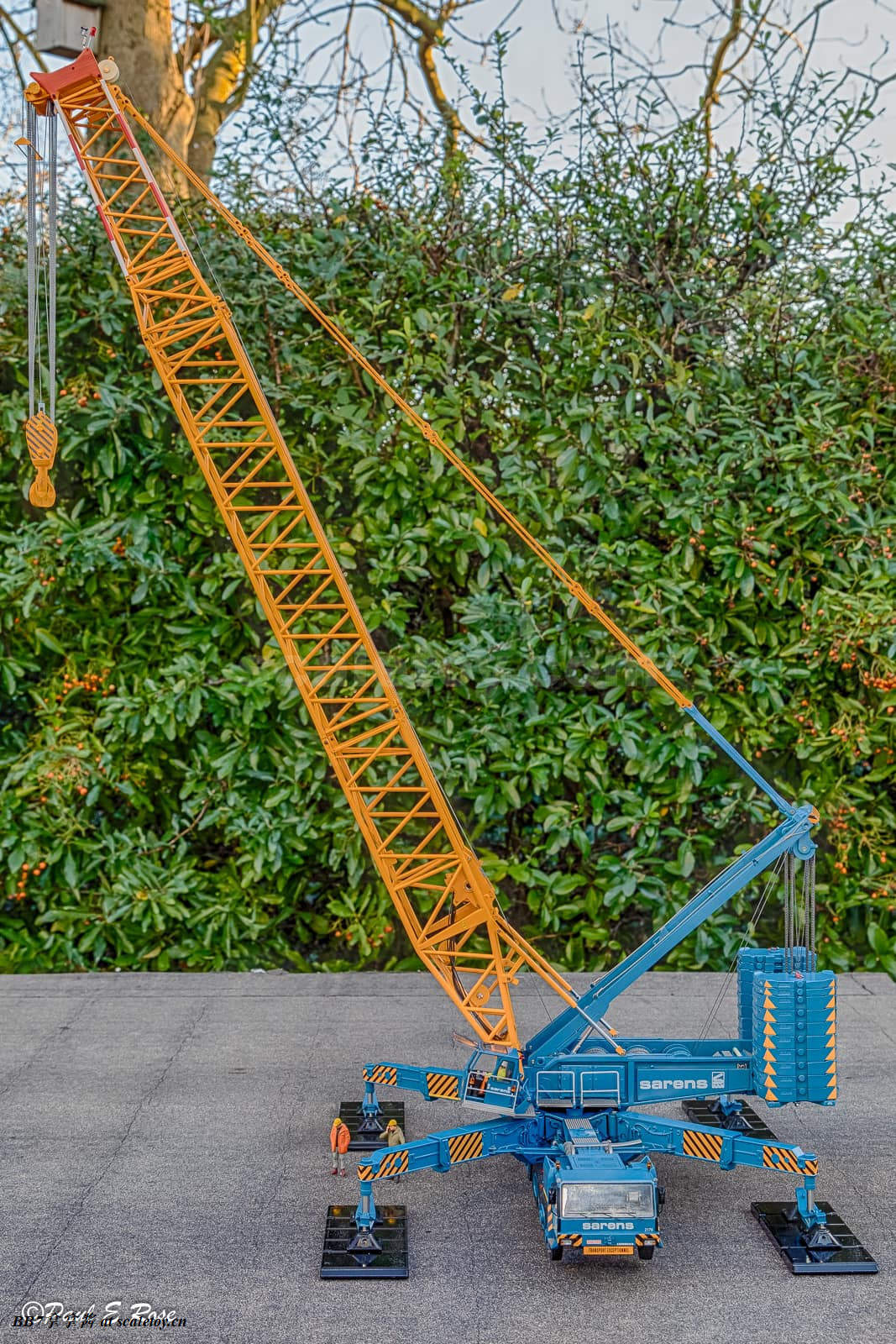 模型的这台ltm11200车牌为E0192BFL,应该是公司唯一一台,从官网上信息推测仍然在服役,车身上并没有看到mammoet或者sarens那样常见的车队编号(行业巨头太富了,车太多才需要编号≥≤)。