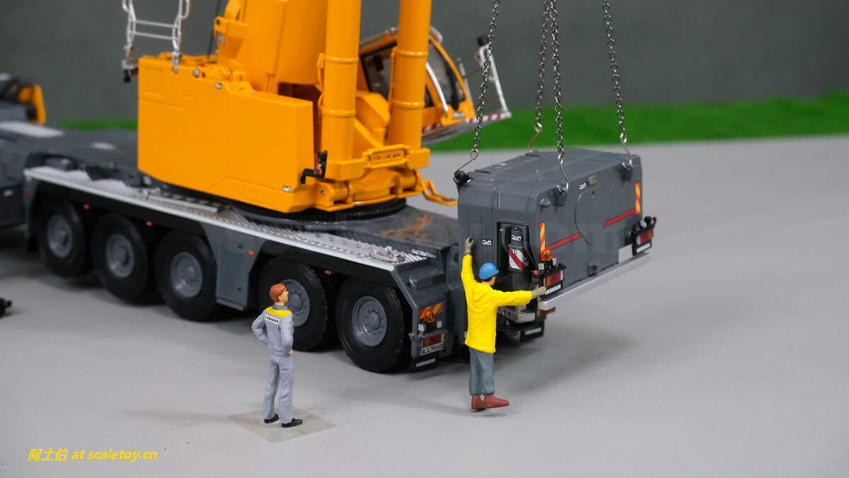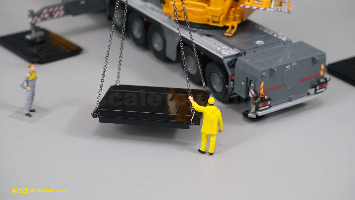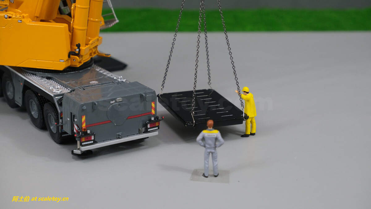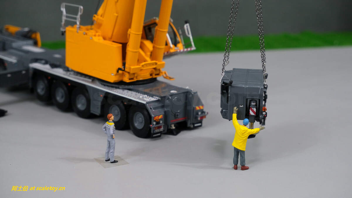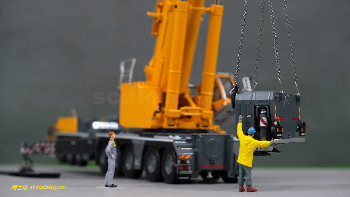 由于本套模型包含了吊链附件,仅用本套模型就可以直接给我们展示一下实车的装配过程,挺有意思的。有兴趣的朋友可以去LIEBHERR官网看,实车组装起来的程序基本和WSI模型这里的指引一致。