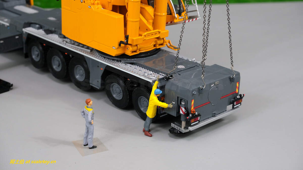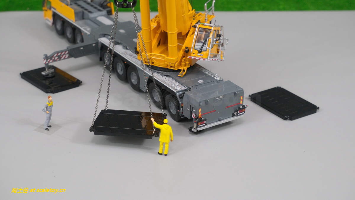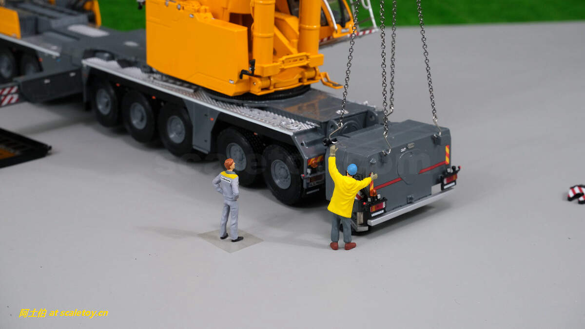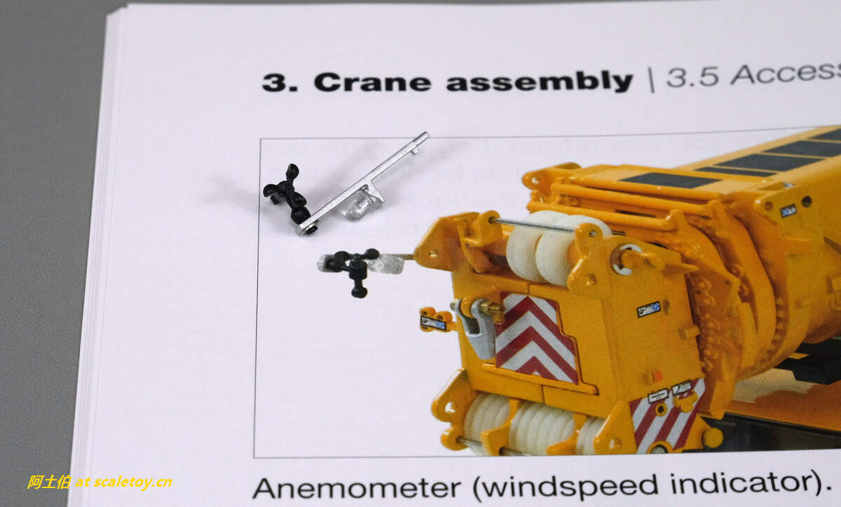 由于本套模型包含了吊链附件,仅用本套模型就可以直接给我们展示一下实车的装配过程,挺有意思的。有兴趣的朋友可以去LIEBHERR官网看,实车组装起来的程序基本和WSI模型这里的指引一致。
