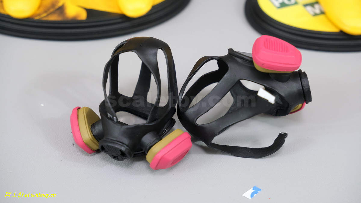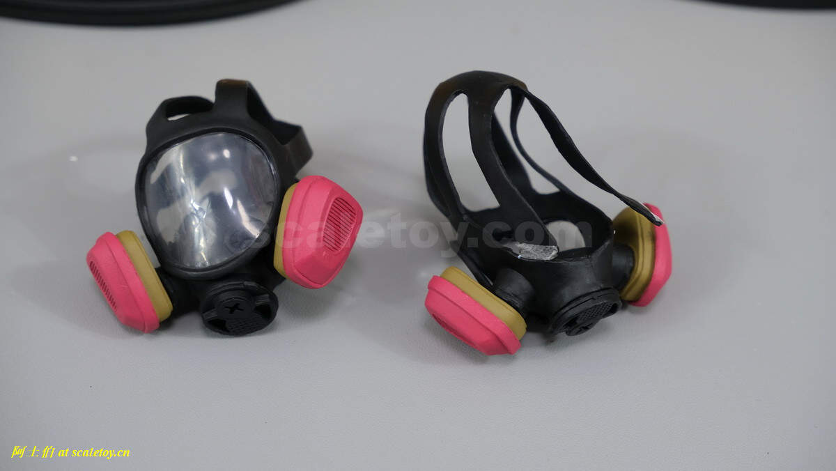 这是这套模型的败笔了。两个面罩,材质是很硬的塑料;要上头估计要破坏性作业。而且头带和面罩之间是用类似双面胶来连接的,基本是沾不住的。我看对1/6兵人的面罩虽然款式不同,但也应该比较成熟的材质和做法了;不知道厂家这个点为啥那么省钱。
