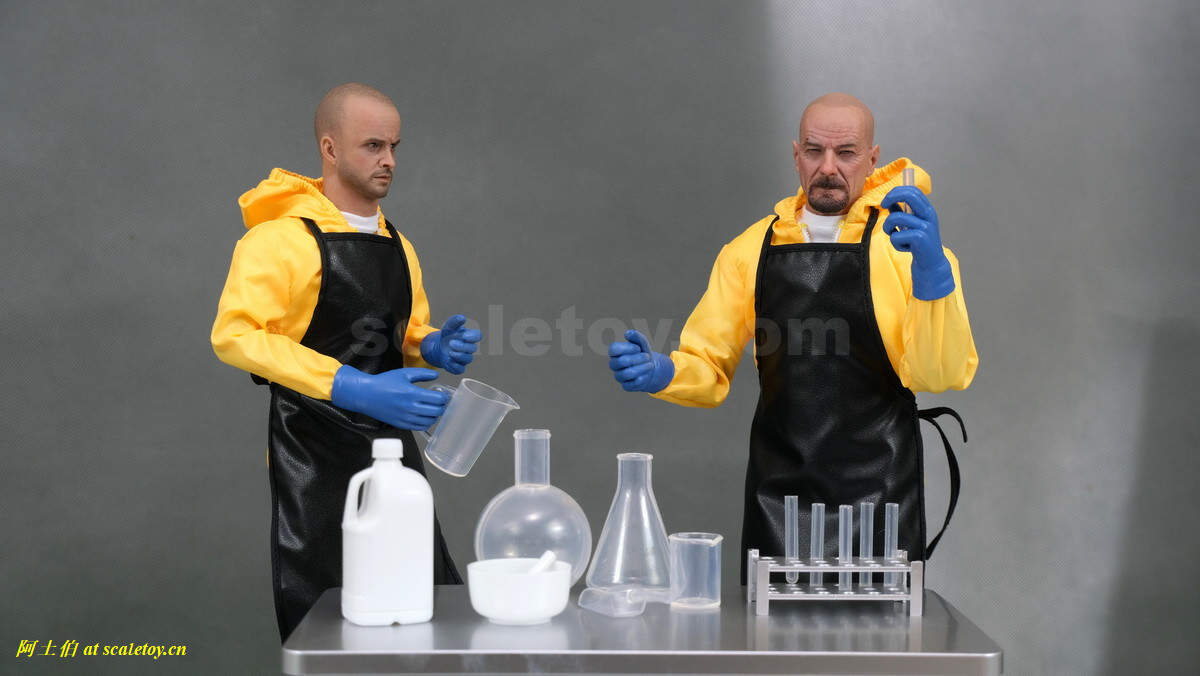 最近,高分美剧绝命毒师貌似因为2023超级碗发布了PopCorners的广告又掀起一轮热度。我们来看下PRESENT TOYS出品的这套双体1/6人偶,当然估计没有授权,所以标题等信息都没有明示;但剧照和人偶的样子一看就知道。