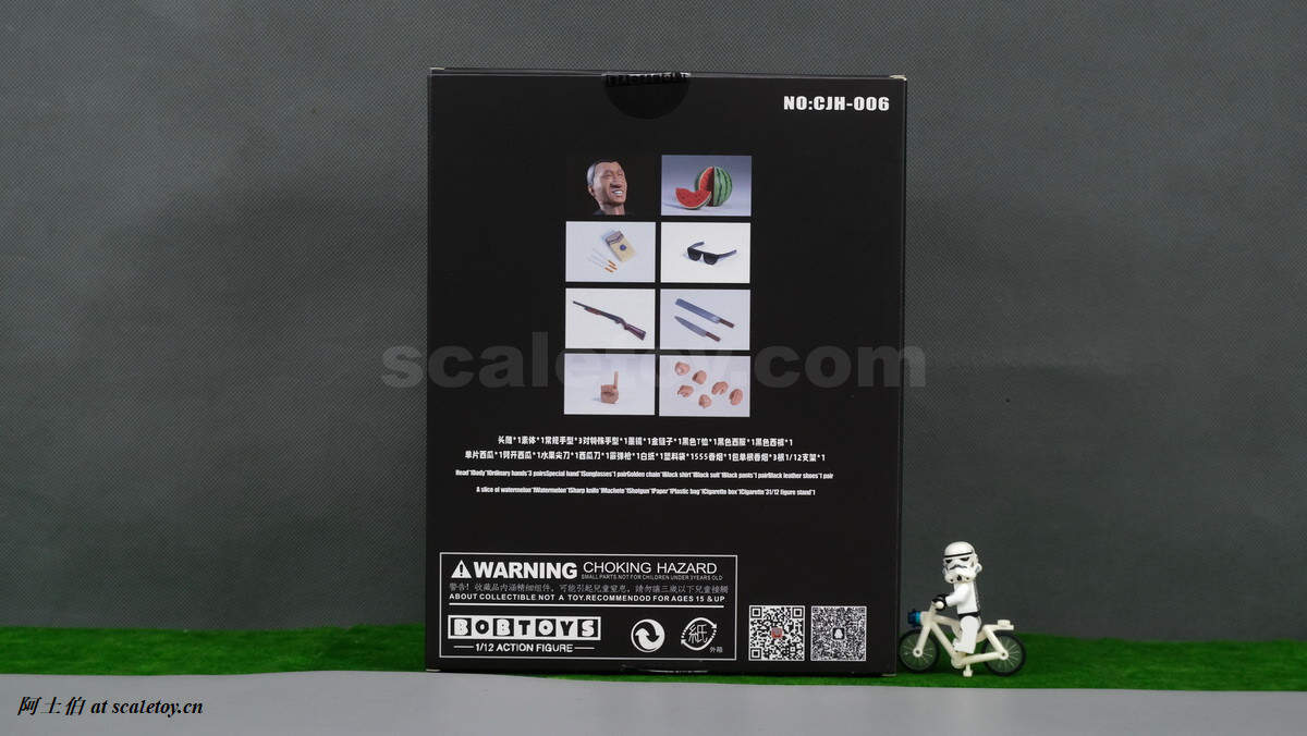 影视人物 movie[BOBTOYS] 闯江湖 洪强 6寸 1/12比例 作者 阿土伯 2023年6月10日 1 分钟阅读 0 之前曾经介绍过BOBTOYS的几款1/12的趣味人偶,继续介绍。今天的主角是切瓜大哥,相信大家都知道影视原型是谁了。玩具编号为CJH-006,意思是闯江湖系列第六号人物。 这款是黑色西服款,照例有一份小报,介绍了人物的背景故事。 细节。比较喜欢这个憨态可掬的头雕造型,传神。 切瓜 墨镜 骑上我的小摩托 这瓜保熟吗? 标签: 1/12BOBTOYS