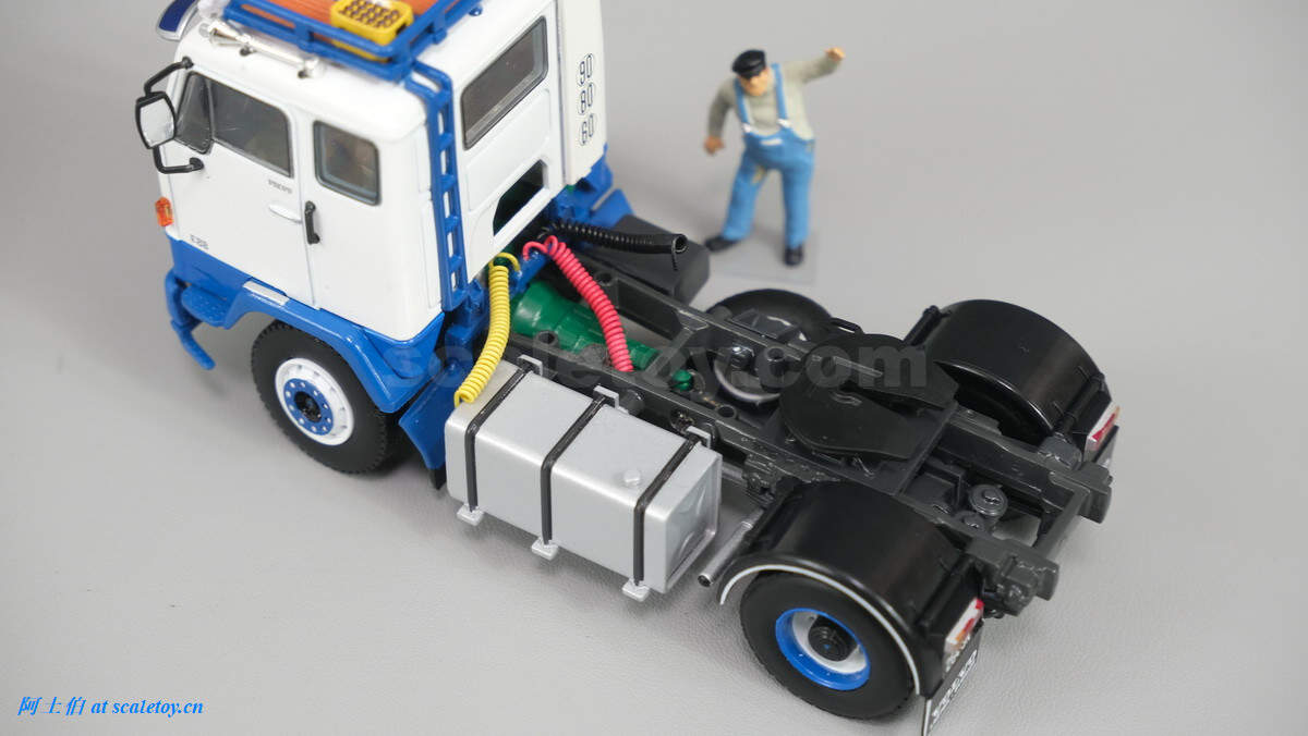拖挂部位基本裸露,左侧为油箱,右侧备胎等,细节都不错。