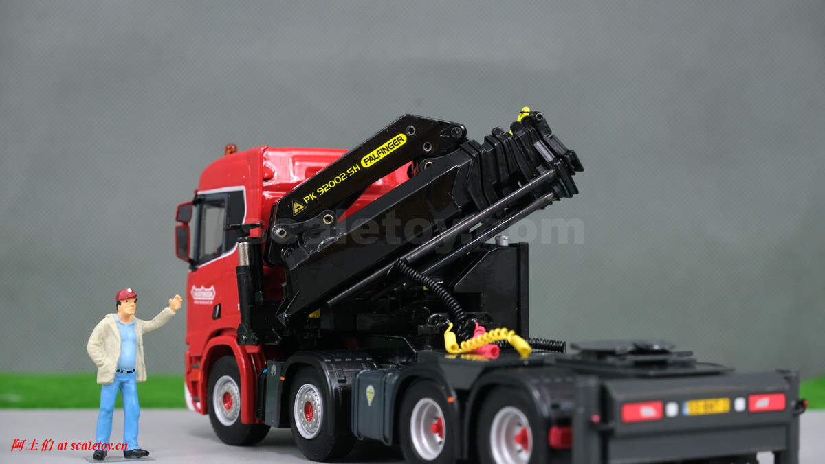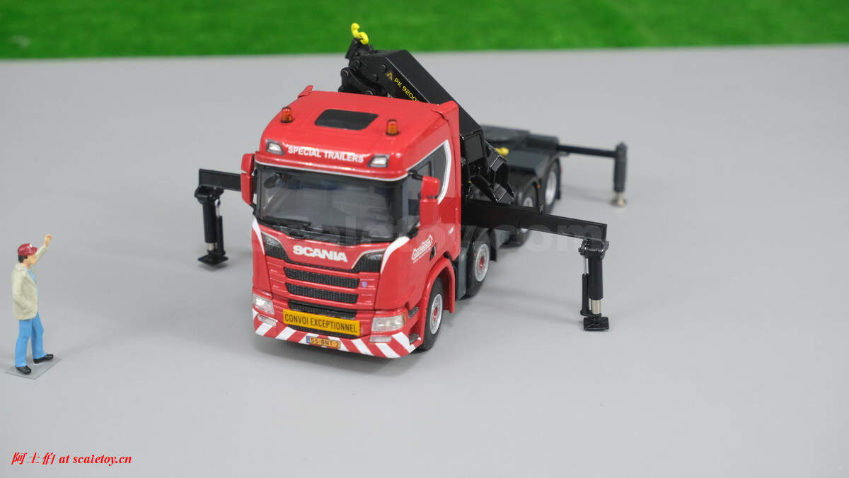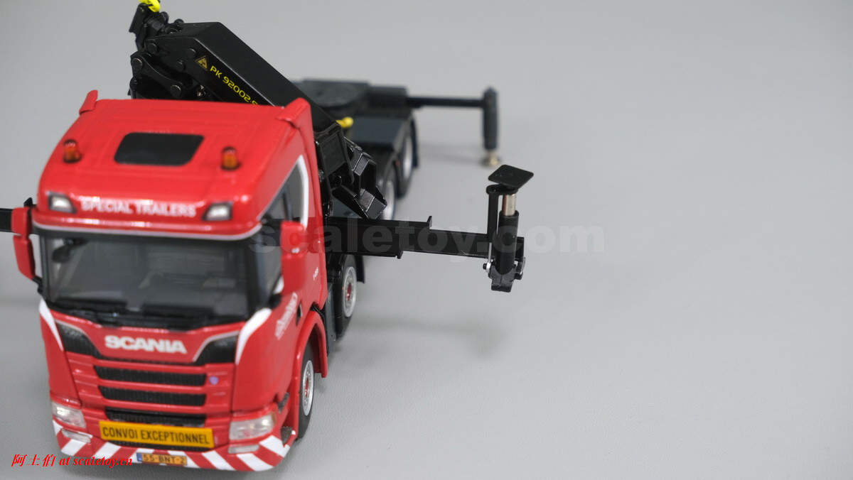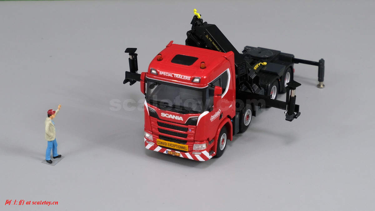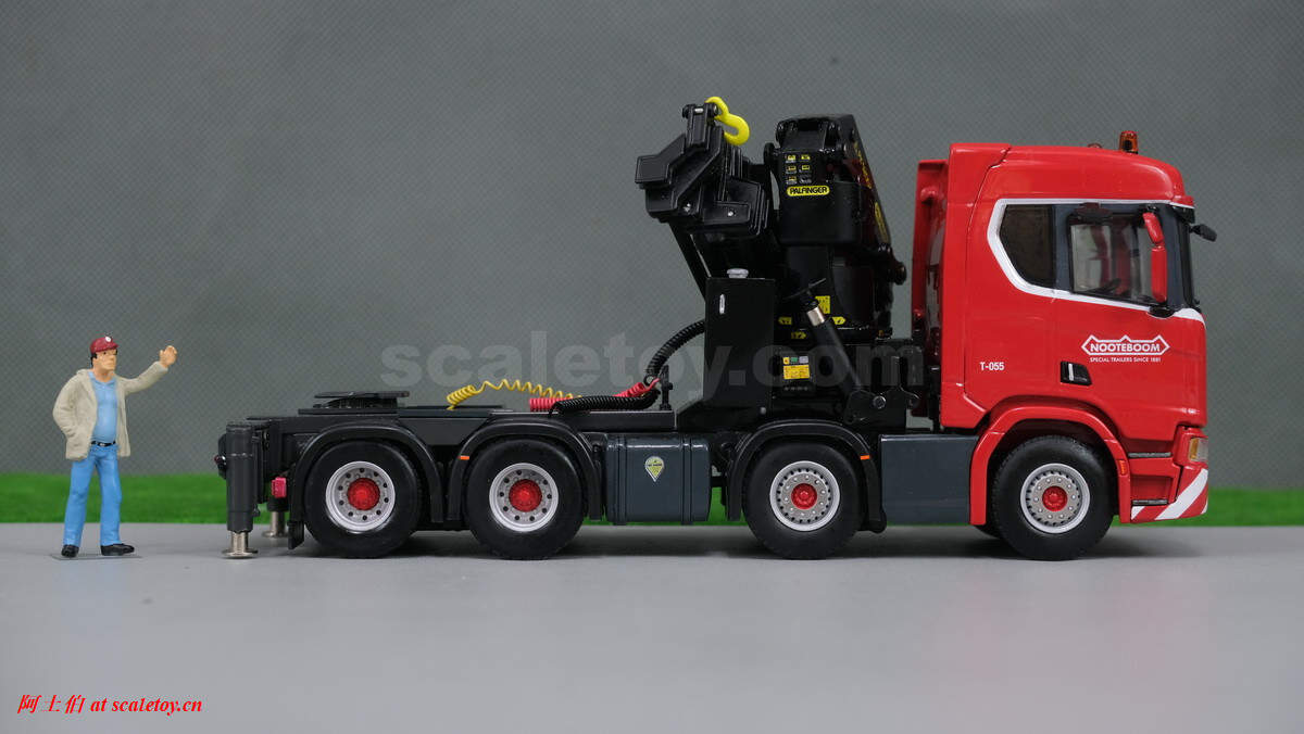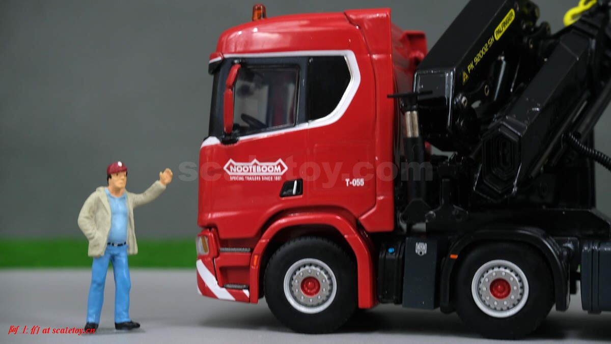 先介绍这台 SCANIA R NORMAL CR20N 8X4 NOOTEBOOM EURO-PX LOW LOADER – 2 AXLE + PALFINGER PK 150002 SH WITH JIB,编号02-2938 / 5927390 ,比例1/50: