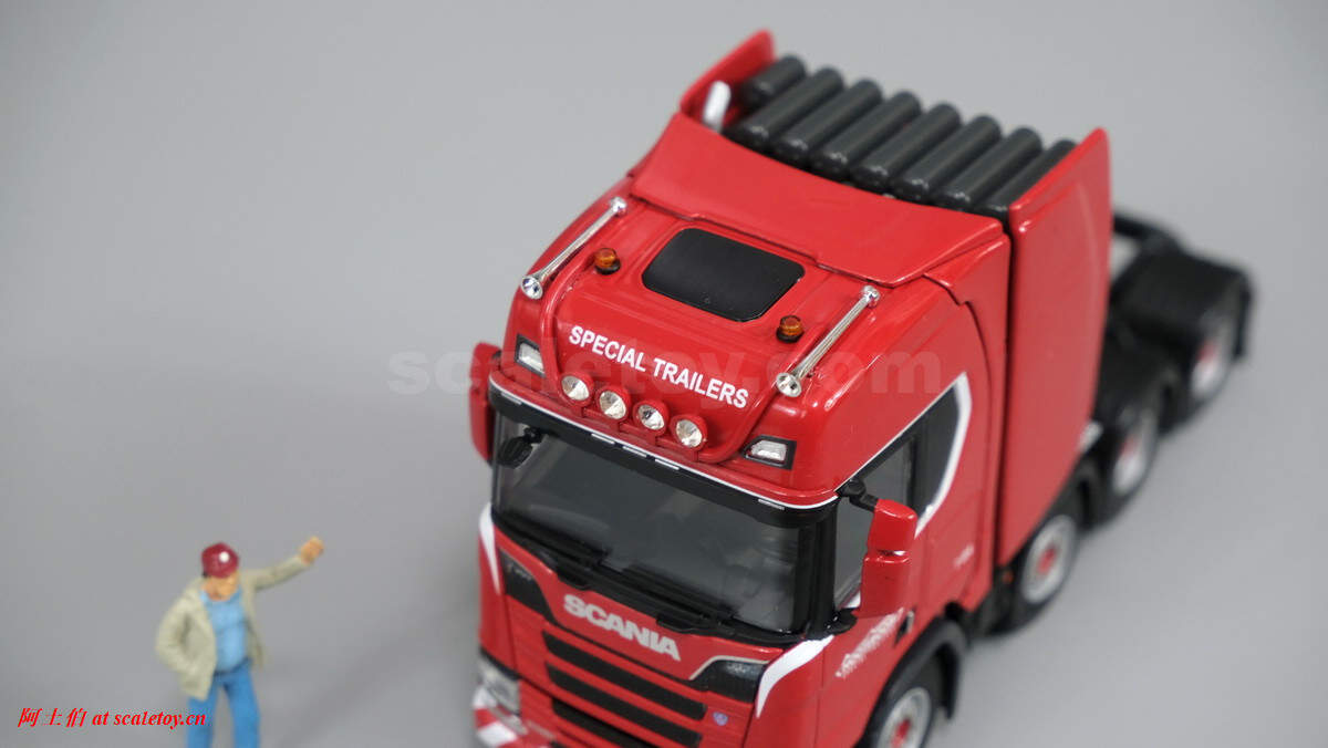 今天介绍这款编号02-2941 / 5927188,是一台斯堪尼亚R系HIGHLINE驾驶室CR20H的8X4拖头,配2+4轴低板。比例仍然是1/50。