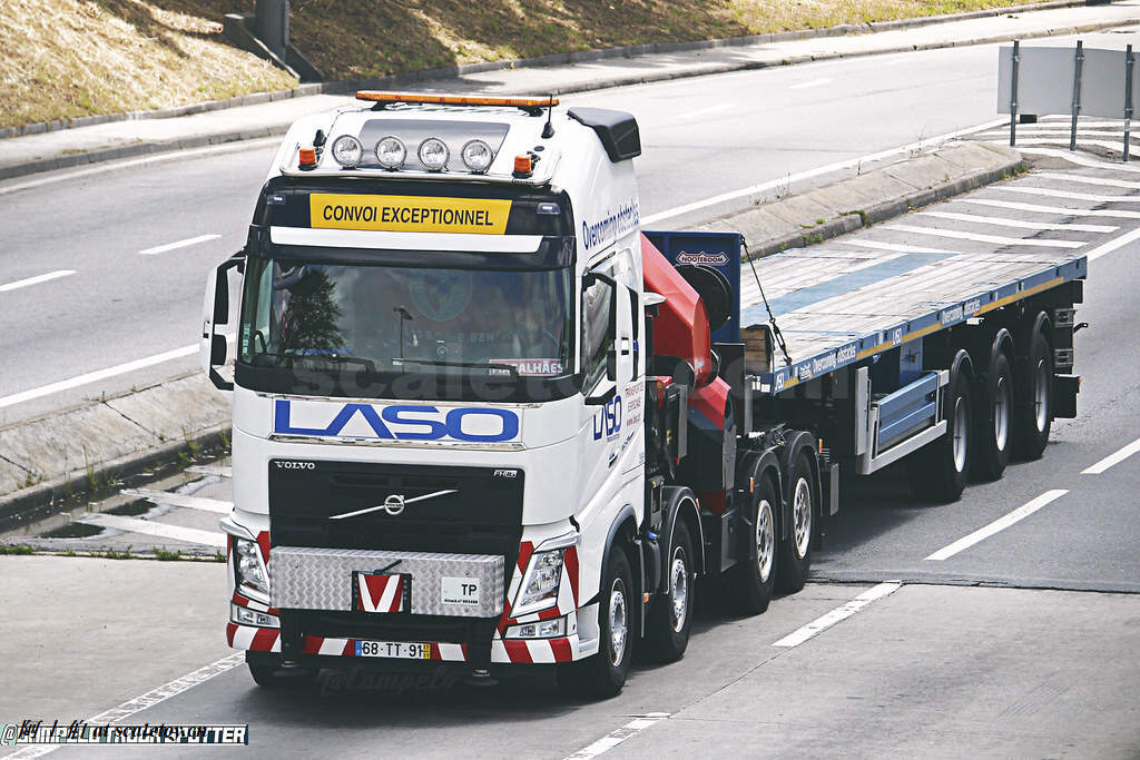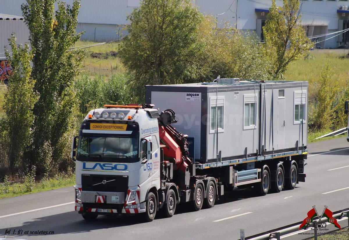 [WSI] VOLVO FH4 GLOBETROTTER XL 8X4 and PALFINGER PK150002 SH with NOOTEBOOM 4x TELESTEPTRAILER – LASO 沃尔沃拖头带帕尔菲格随车吊挂NOOTEBOOM可延伸拖板 葡萄牙LASO公司涂装