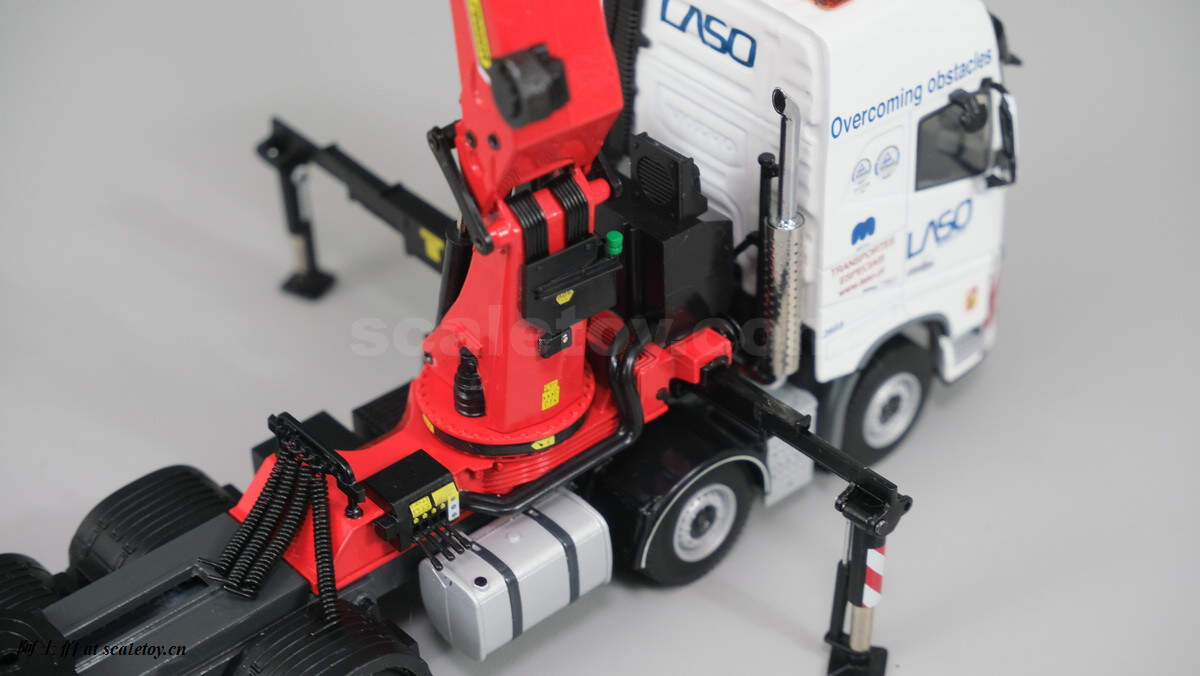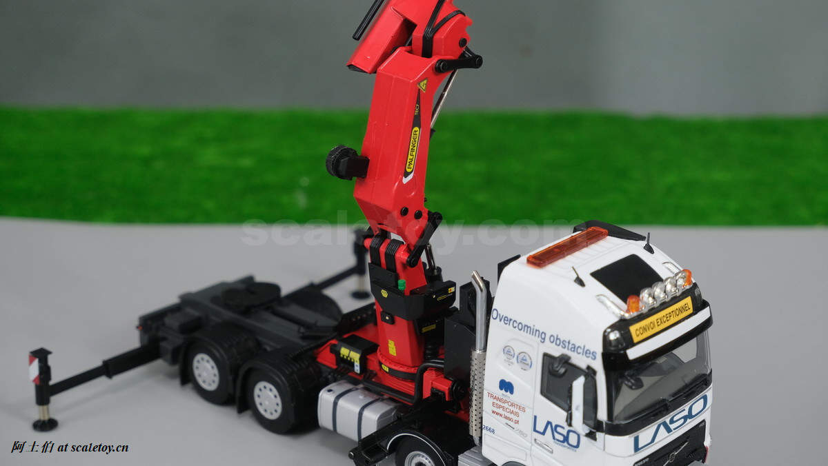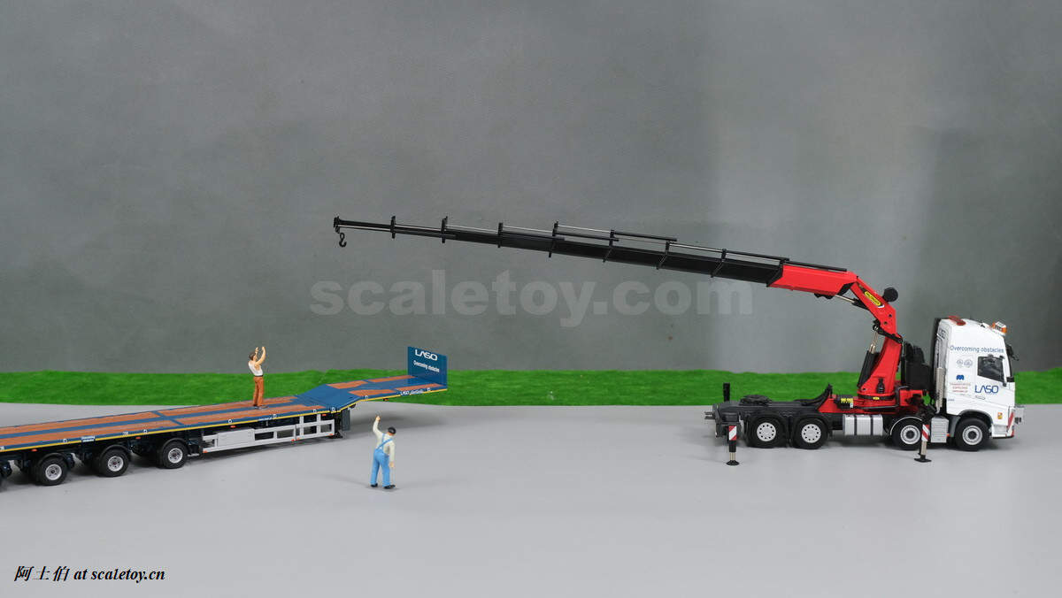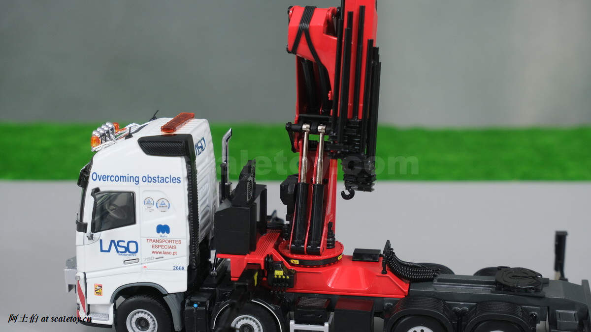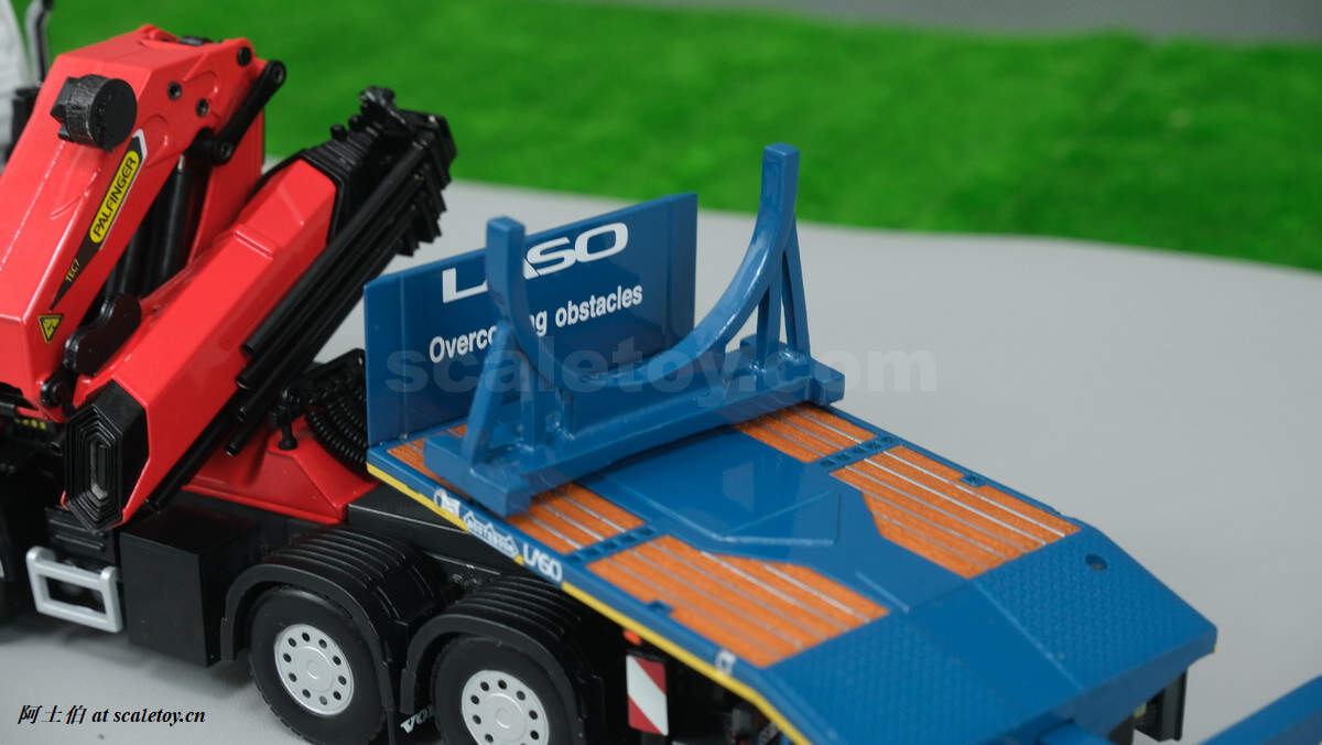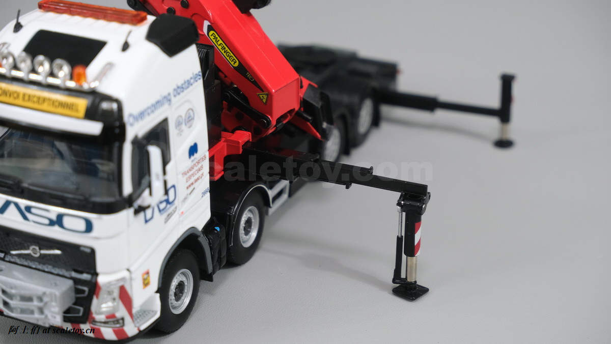 今天介绍的模型是公司一台沃尔沃FH4 GLOBETROTTER XL 8X4拖头带帕尔菲格PK150002 SH随车吊,挂NOOTEBOOM的4轴可延伸拖板。