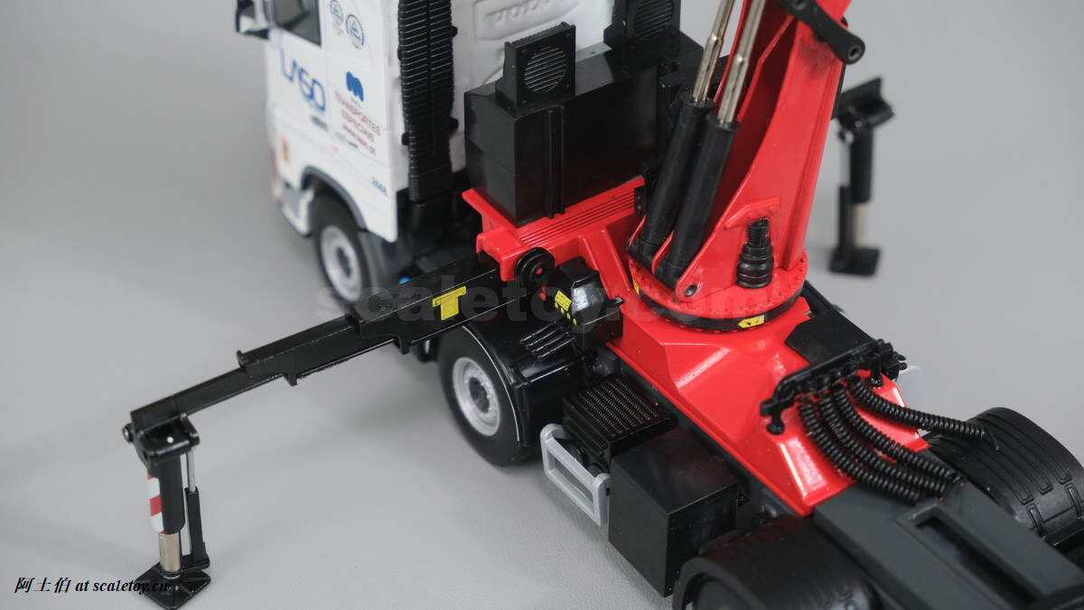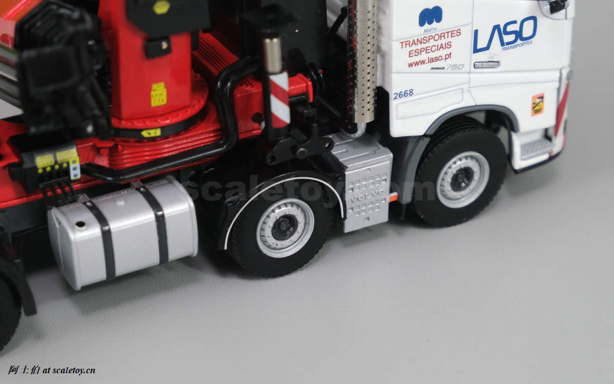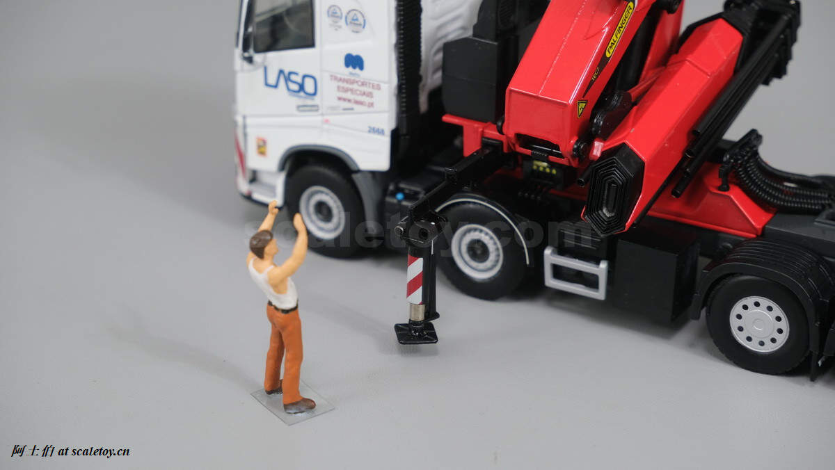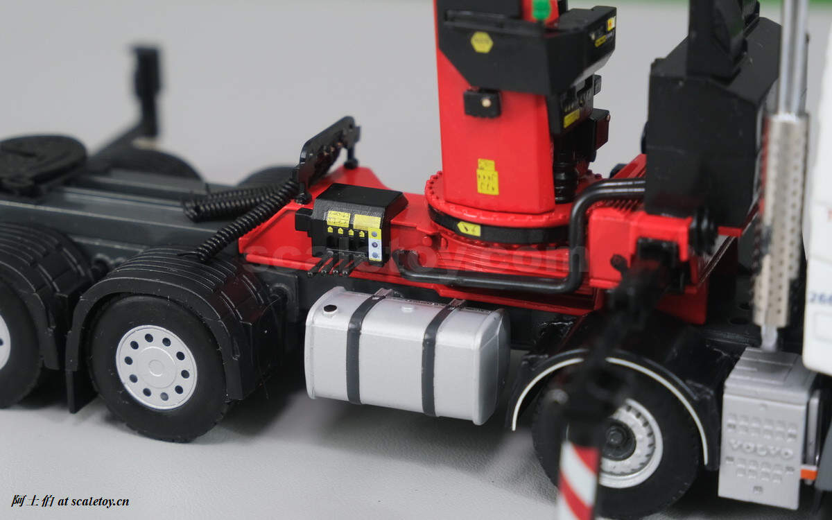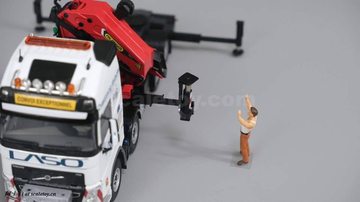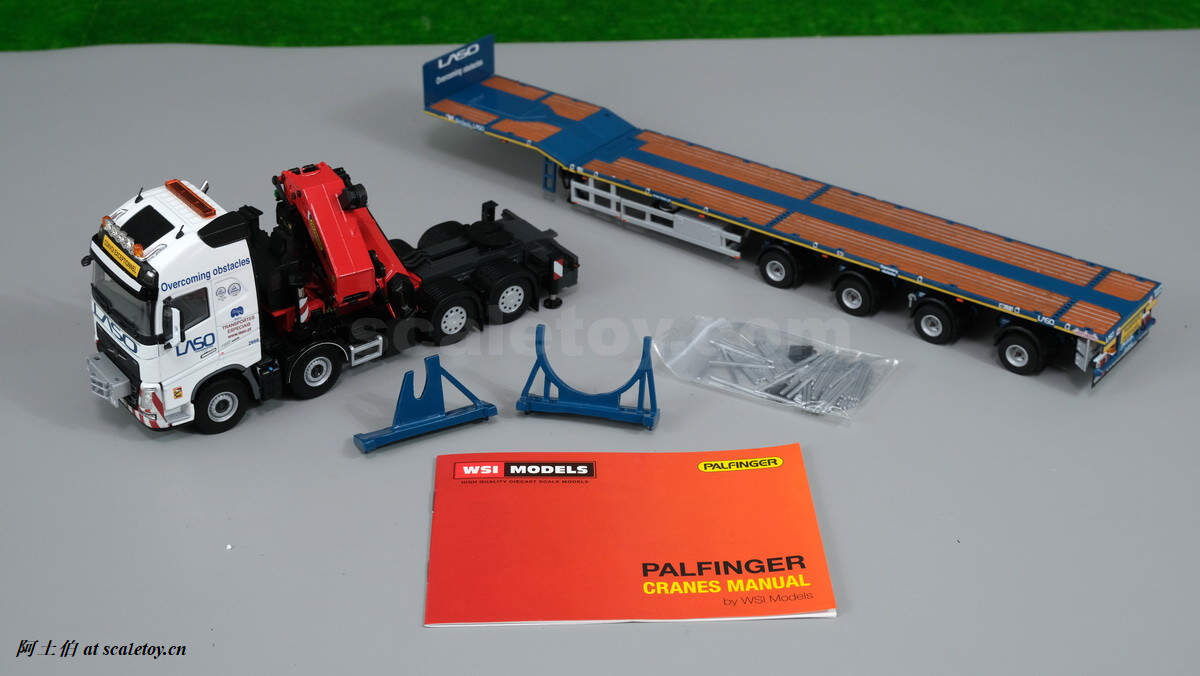 今天介绍的模型是公司一台沃尔沃FH4 GLOBETROTTER XL 8X4拖头带帕尔菲格PK150002 SH随车吊,挂NOOTEBOOM的4轴可延伸拖板。