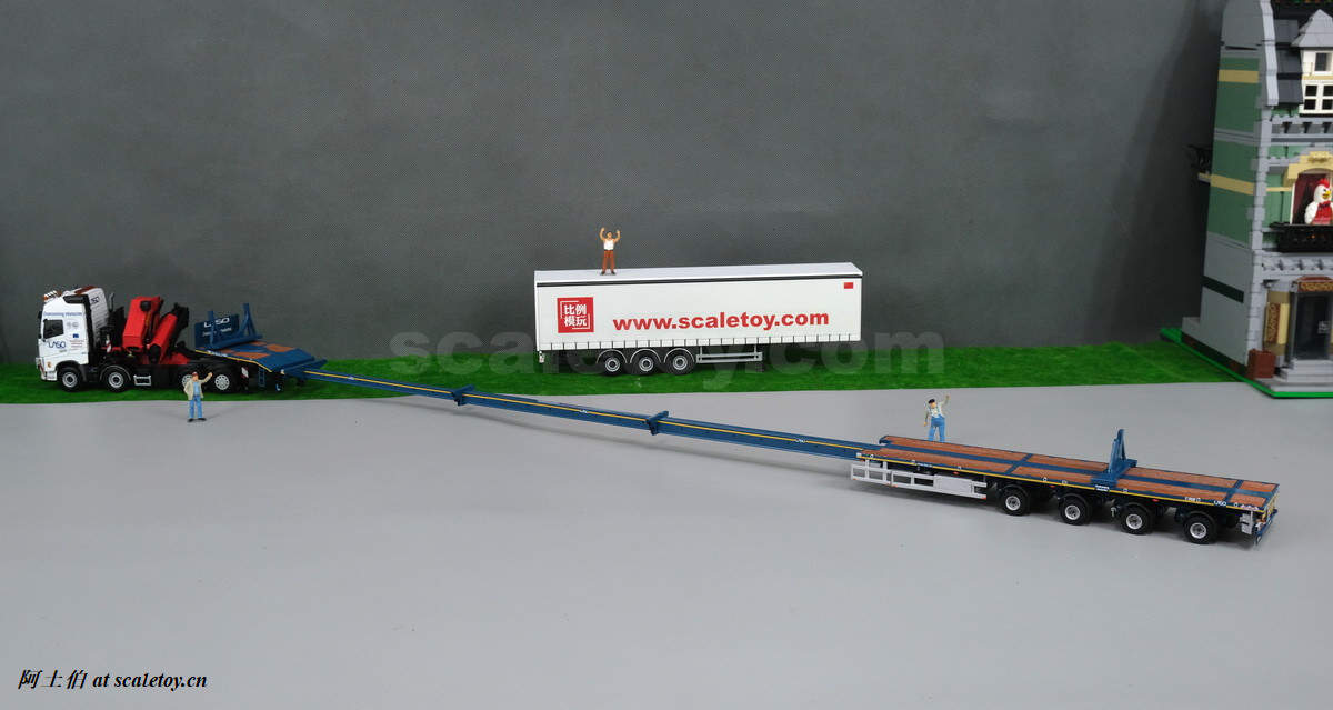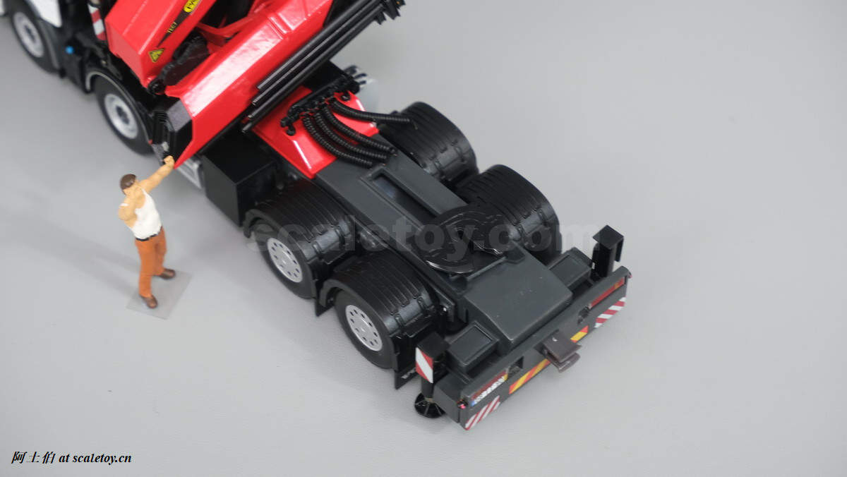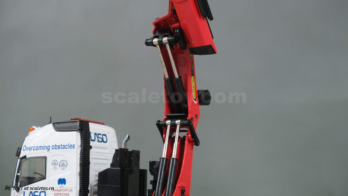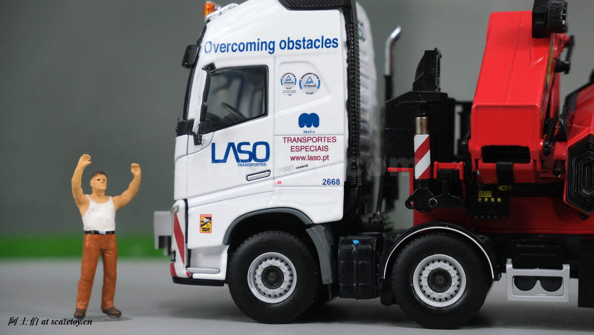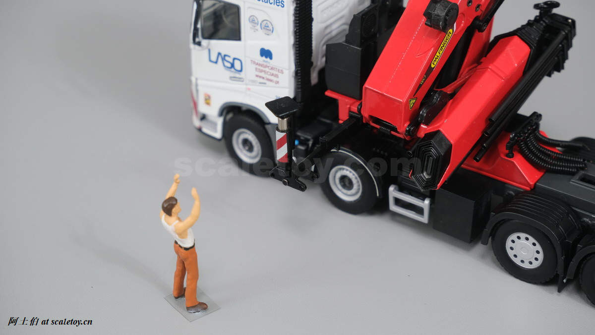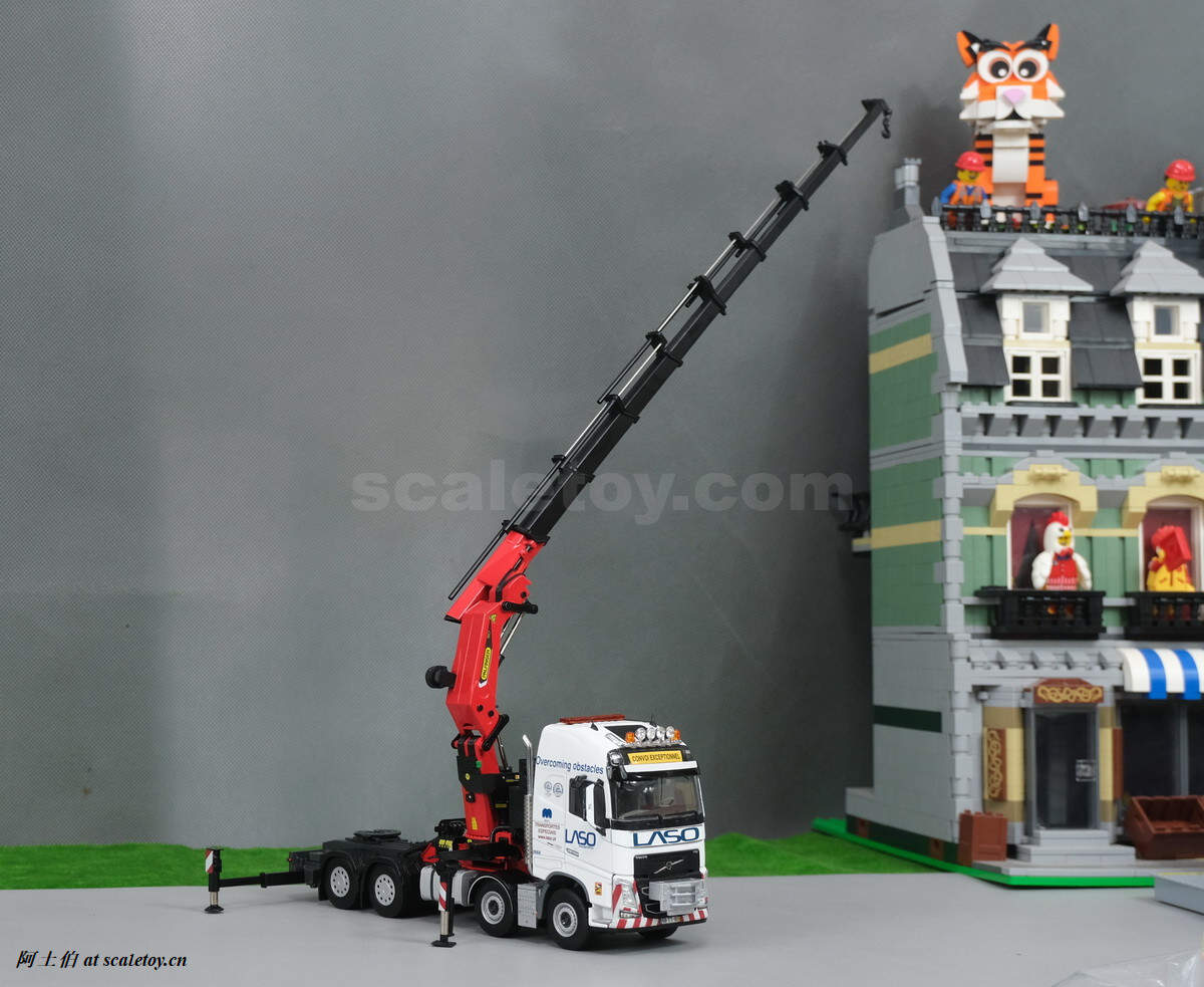 今天介绍的模型是公司一台沃尔沃FH4 GLOBETROTTER XL 8X4拖头带帕尔菲格PK150002 SH随车吊,挂NOOTEBOOM的4轴可延伸拖板。