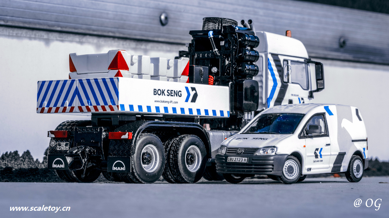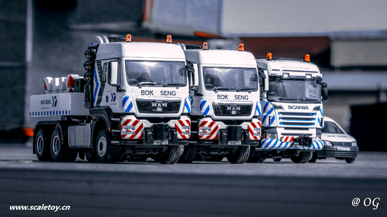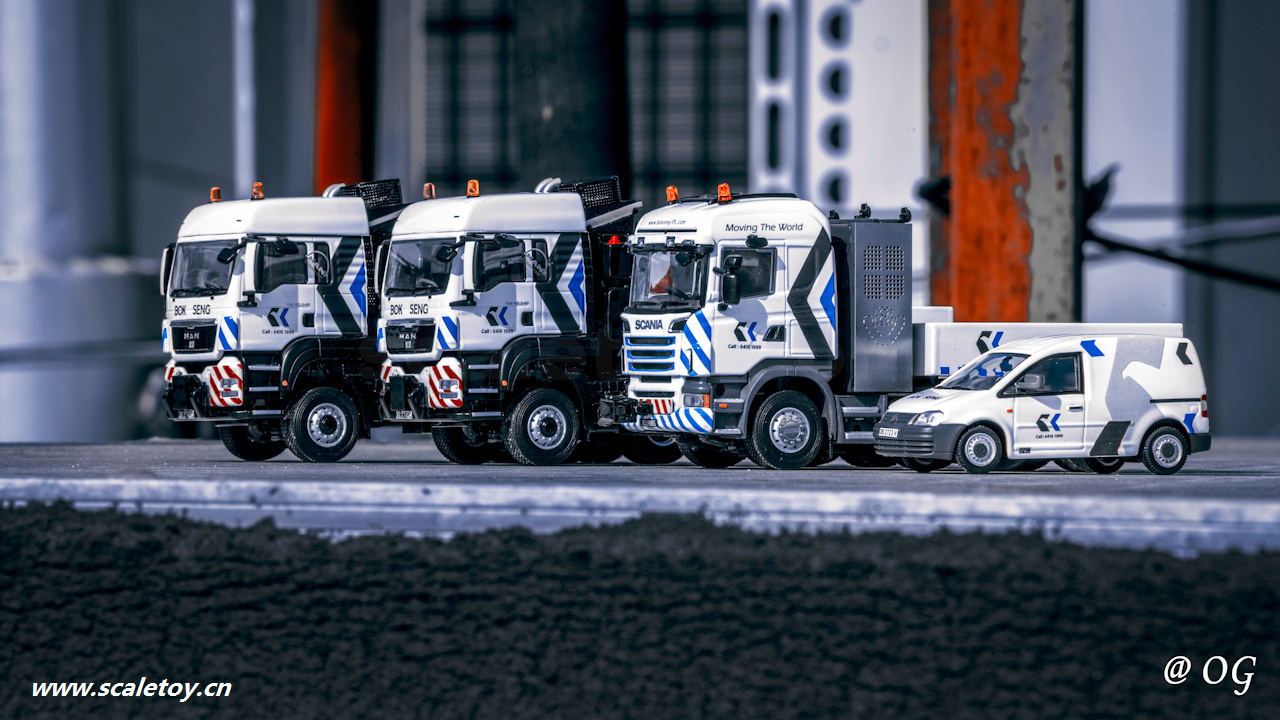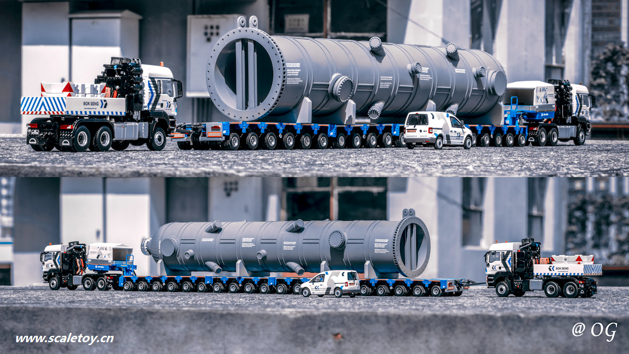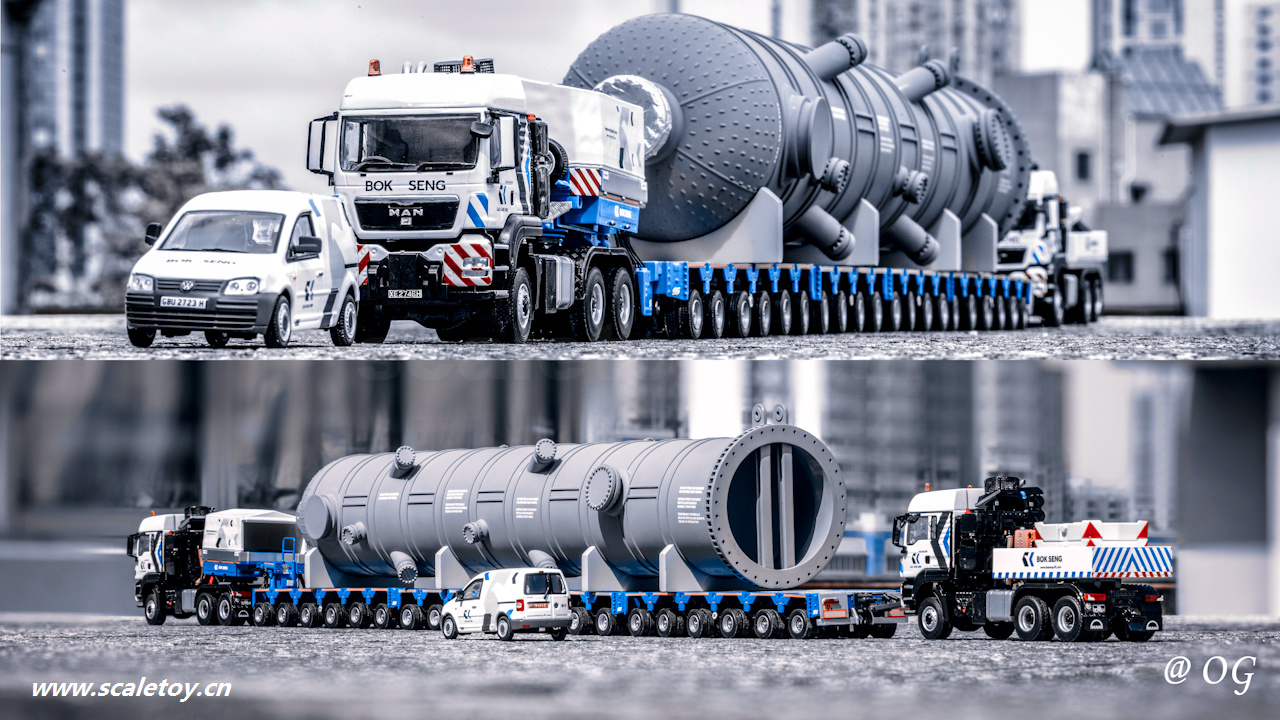 WSI 1/50 MAN 6×6 TGX 40.540 BOK SENG 01-2175 WSI 1/50 Scania 6×4 R6 V8 BOK SENG 01-3438 WSI 1/50 VW – Caddy – Bok Seng 01-2265 YCC 1/50 Ladung Coke Drum ll 250 t