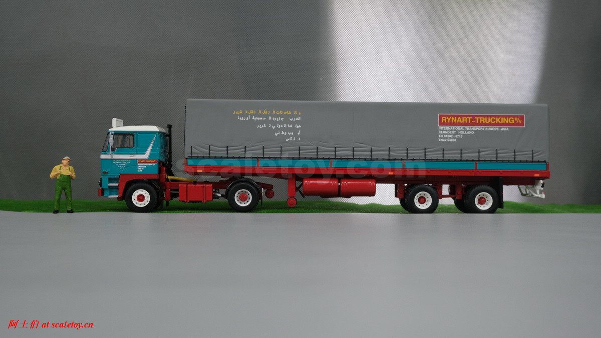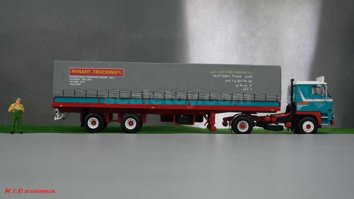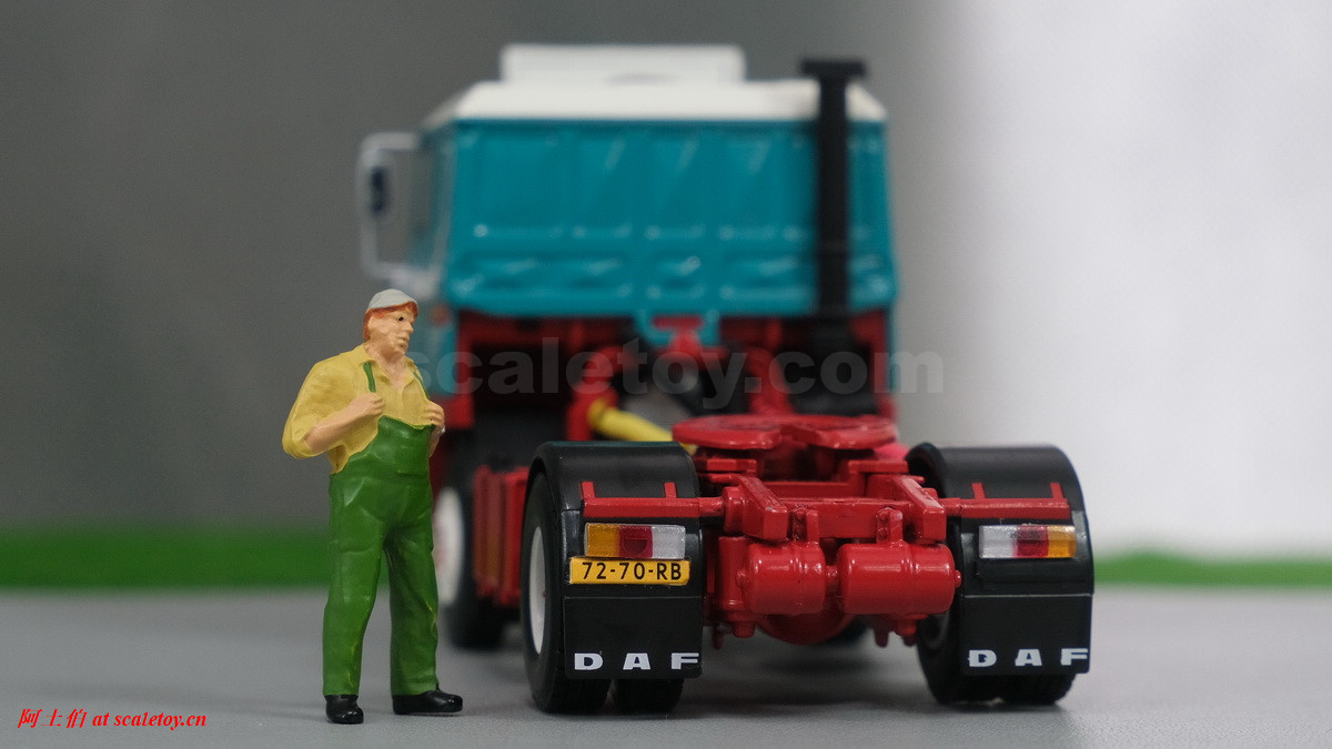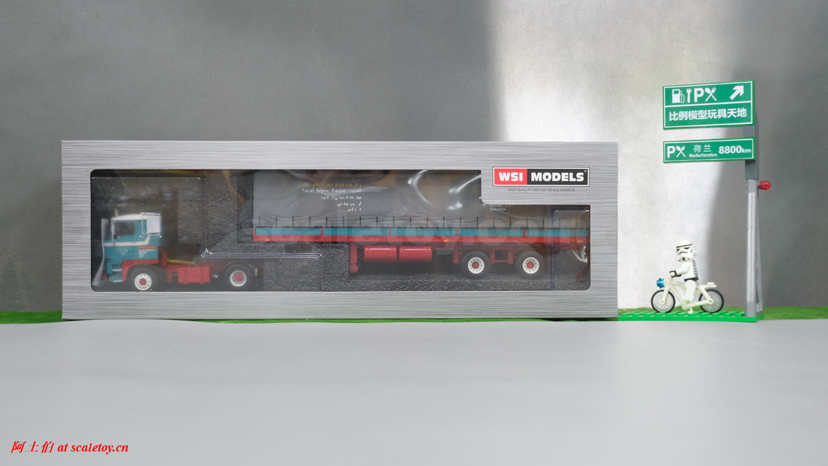 这次WSI制作的这款经典车型是一台达夫2800两轴拖头,挂侧帘挂车。模型编号01-3768,比例1/50。