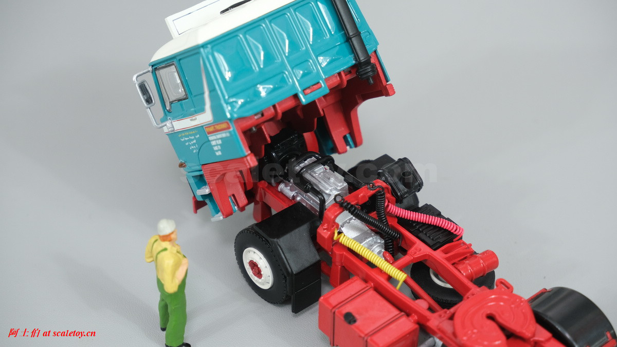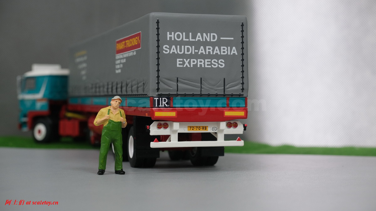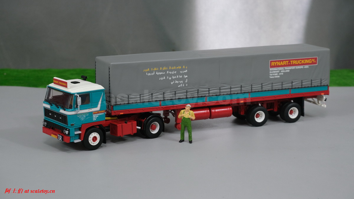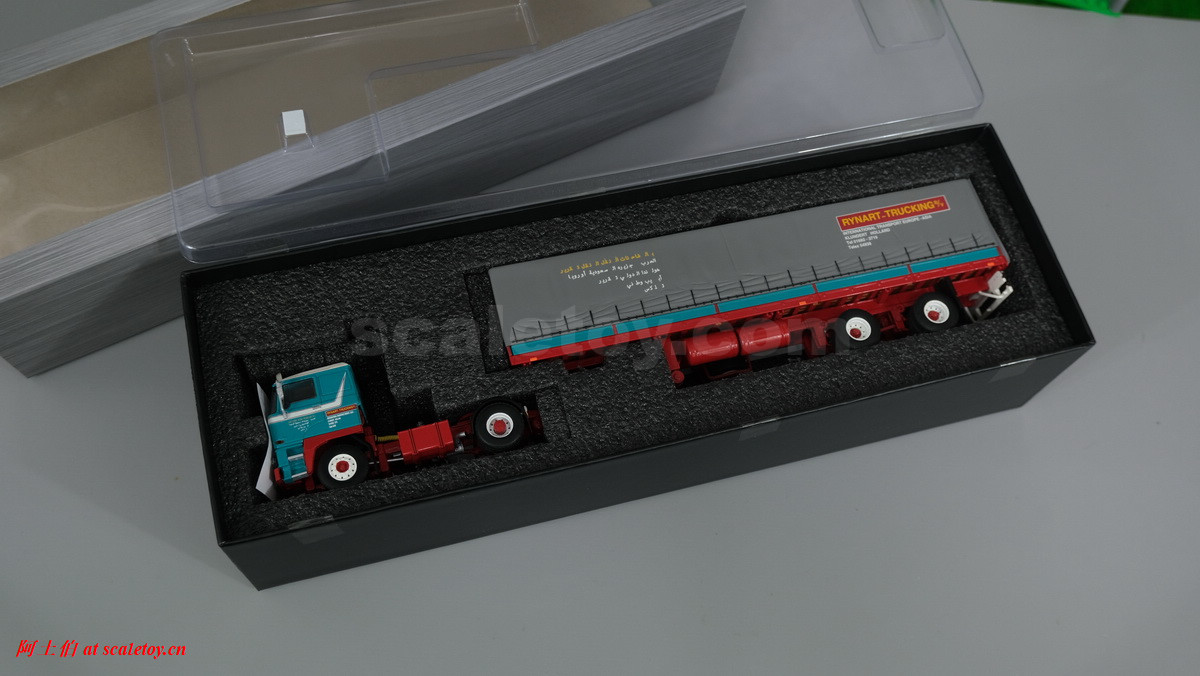 这次WSI制作的这款经典车型是一台达夫2800两轴拖头,挂侧帘挂车。模型编号01-3768,比例1/50。