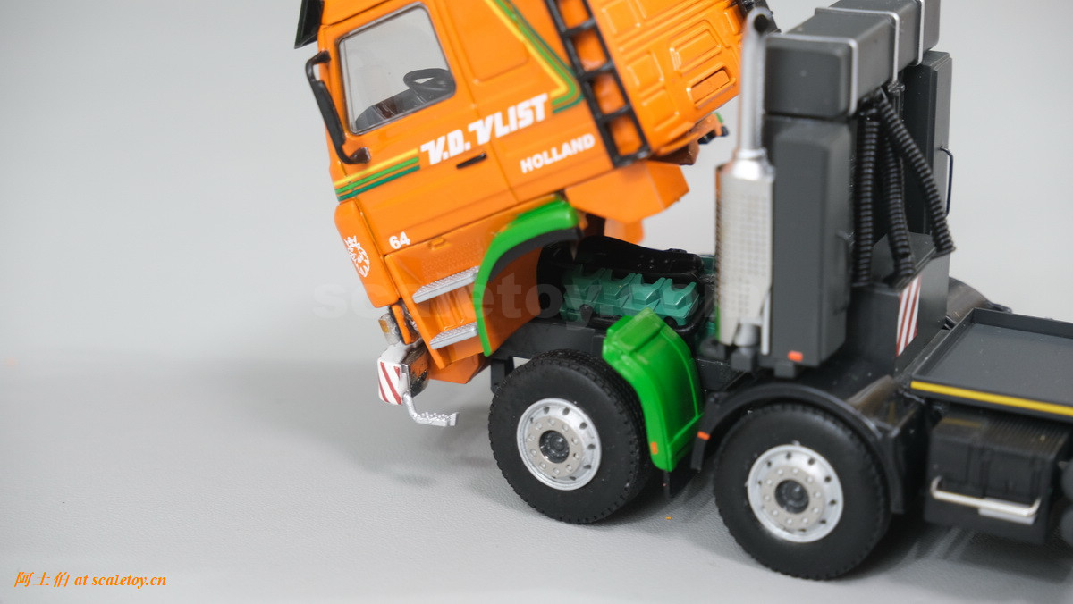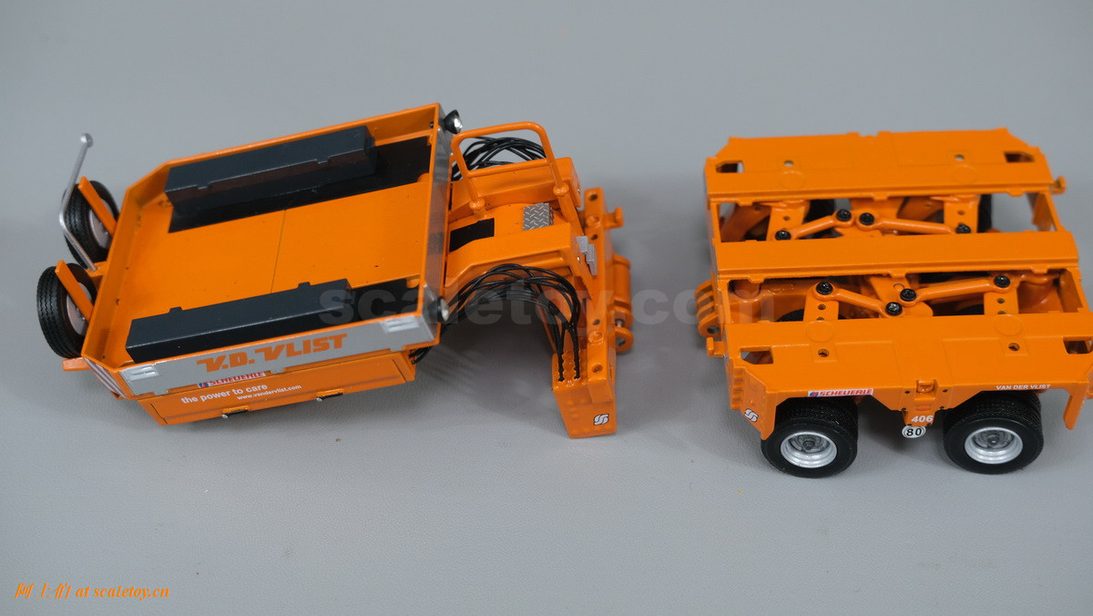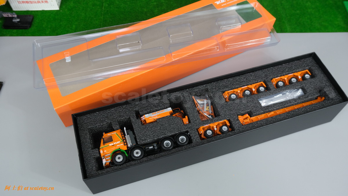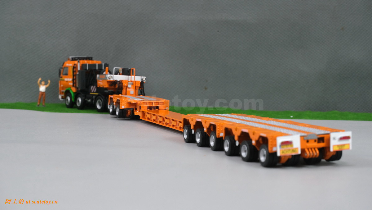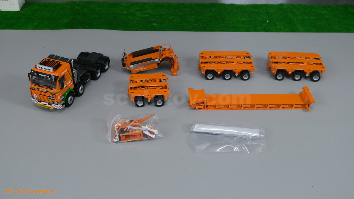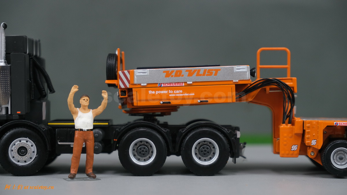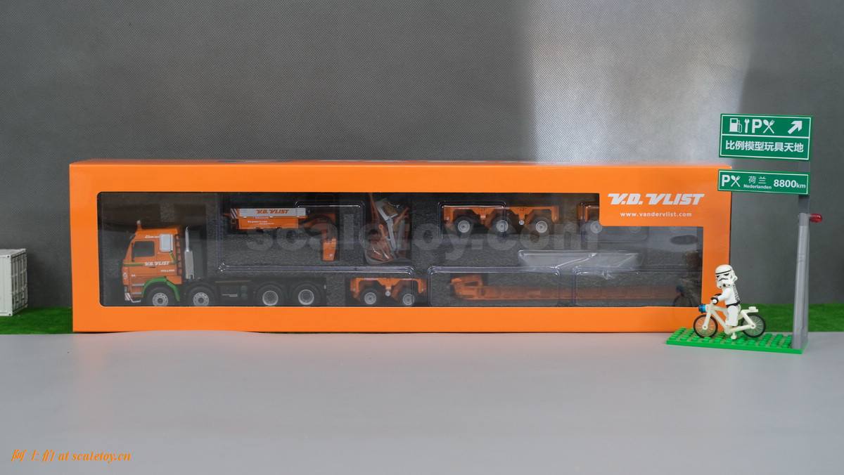 V.D. VLIST家的模型也是丰富多彩,今天介绍一款,原型为斯堪尼亚3系的8X4拖头,挂SCHEUERLE家的拖板组合。