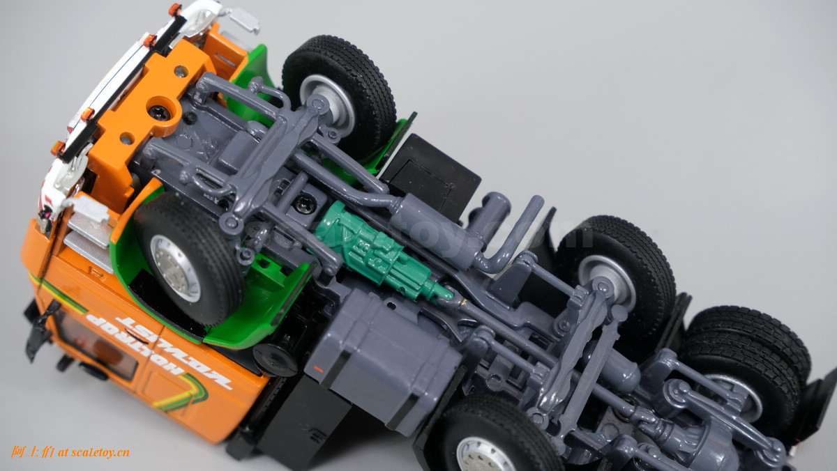 底盘,前两轴转向联动,第三轴驱动。
