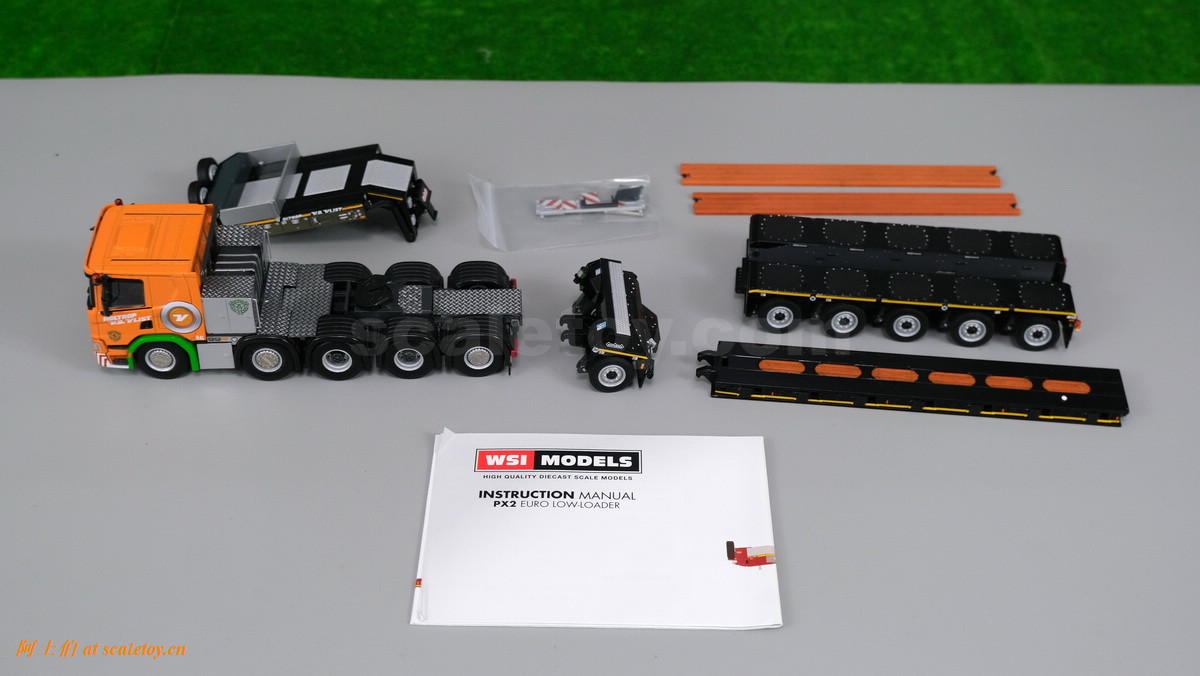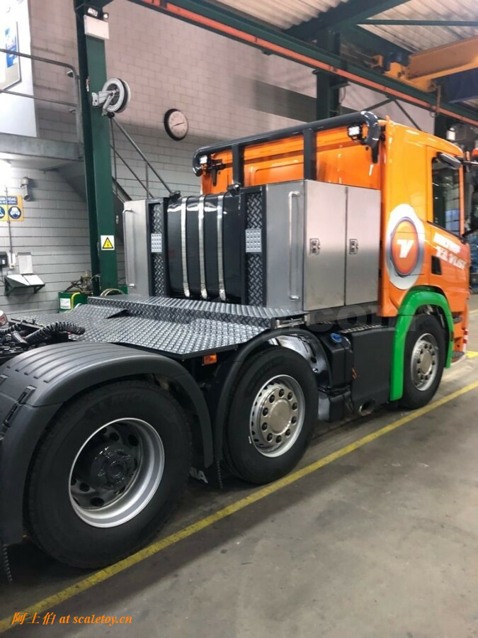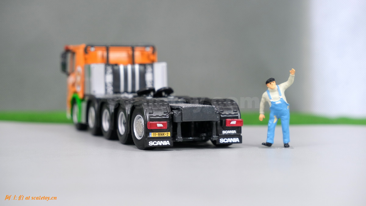 今天介绍的一款是斯堪尼亚P系列的低顶棚10X4拖头,挂1+5轴低板:
