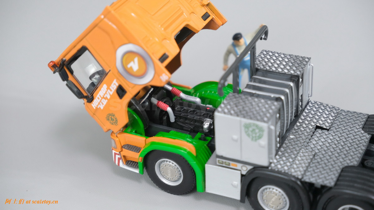 这款模型,比较吸引玩家的是这个五轴拖头。平头驾驶舱是为了运输更长的钻机