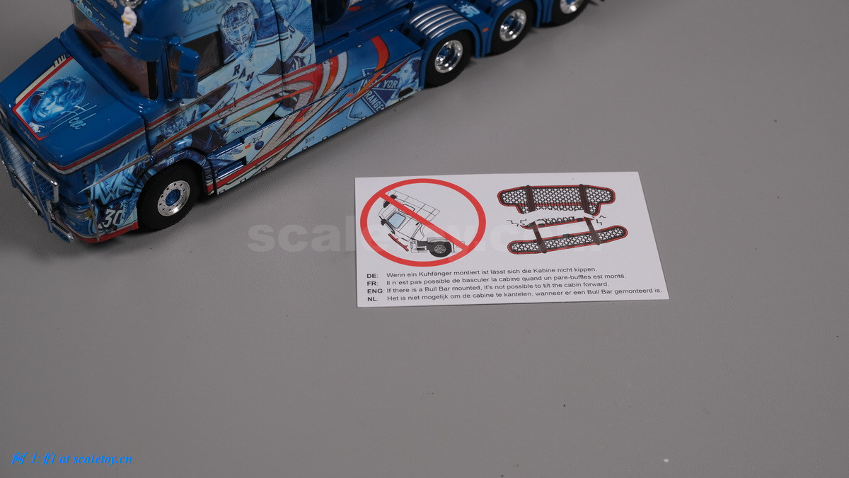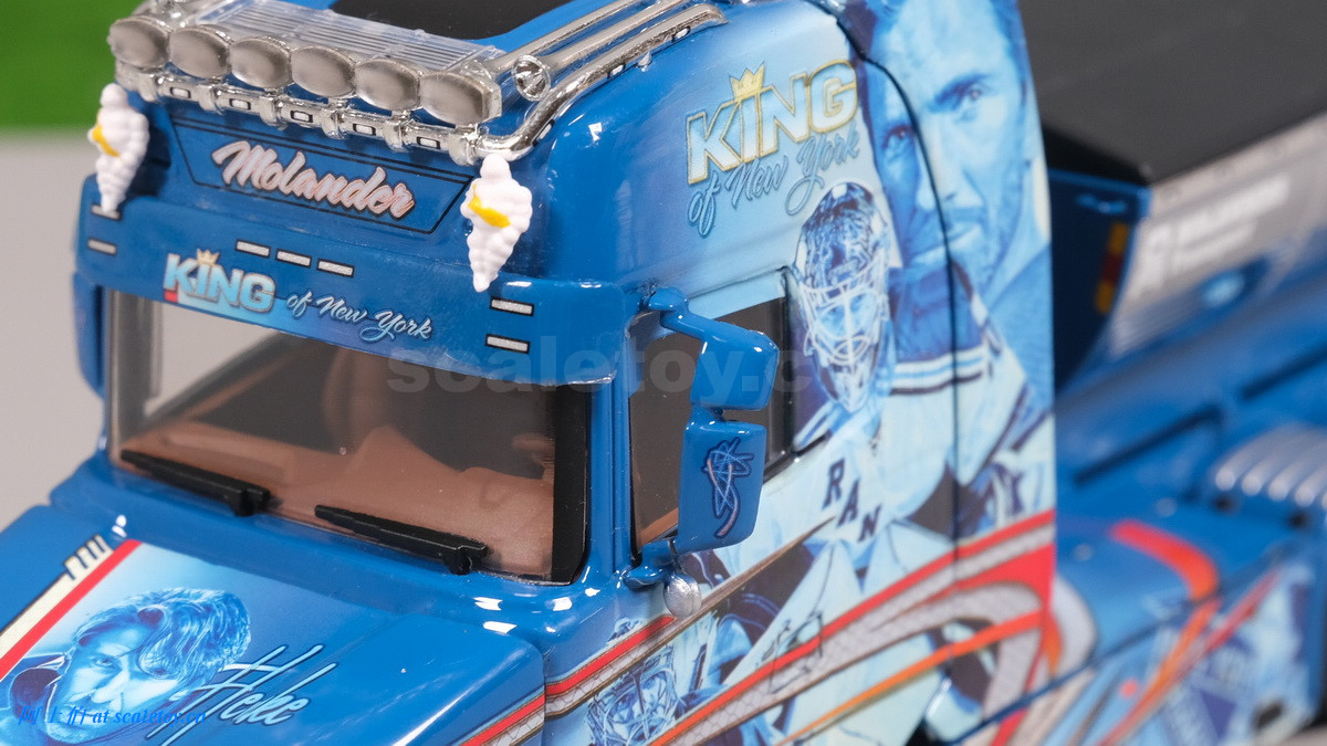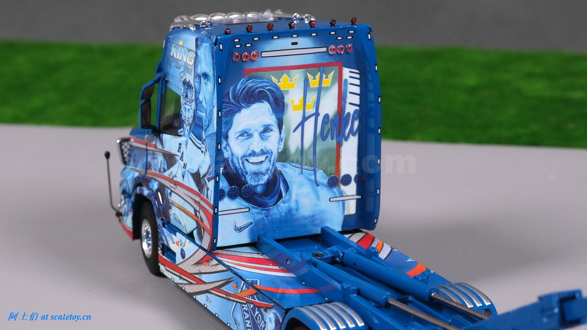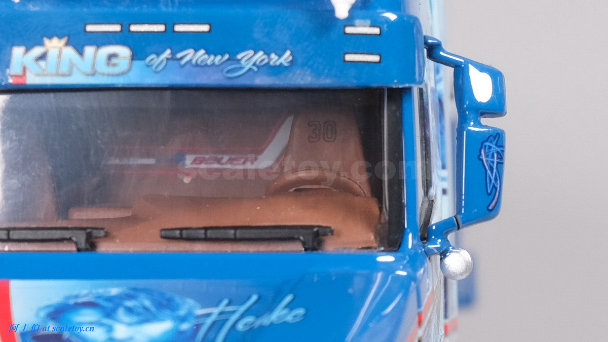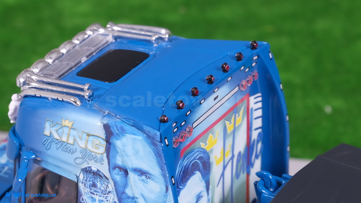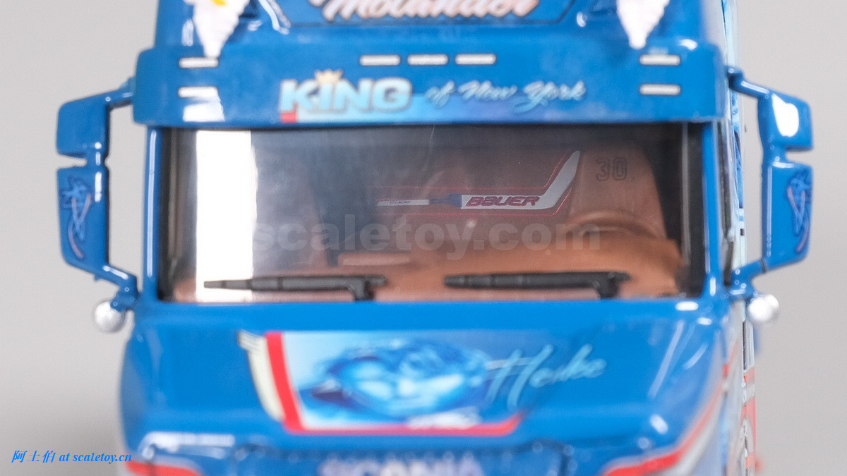 可以看到驾驶室内饰也精心制作,后墙上的冰球球杆图案和实车一致,座椅上的30也是球员的球衣号码。