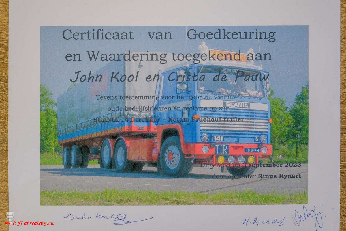 2023年9月3日,John 和新涂装的卡车前往Moerdijk,向 Rinus Rynart 展示了这一车辆。 快79岁的Rinus现场登上了这台车,并表示这确实是 20 世纪 70 年代末的样子,连半挂车密封线后面的黑色插条也没有被忘记。