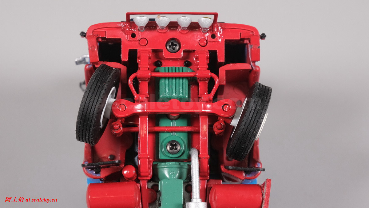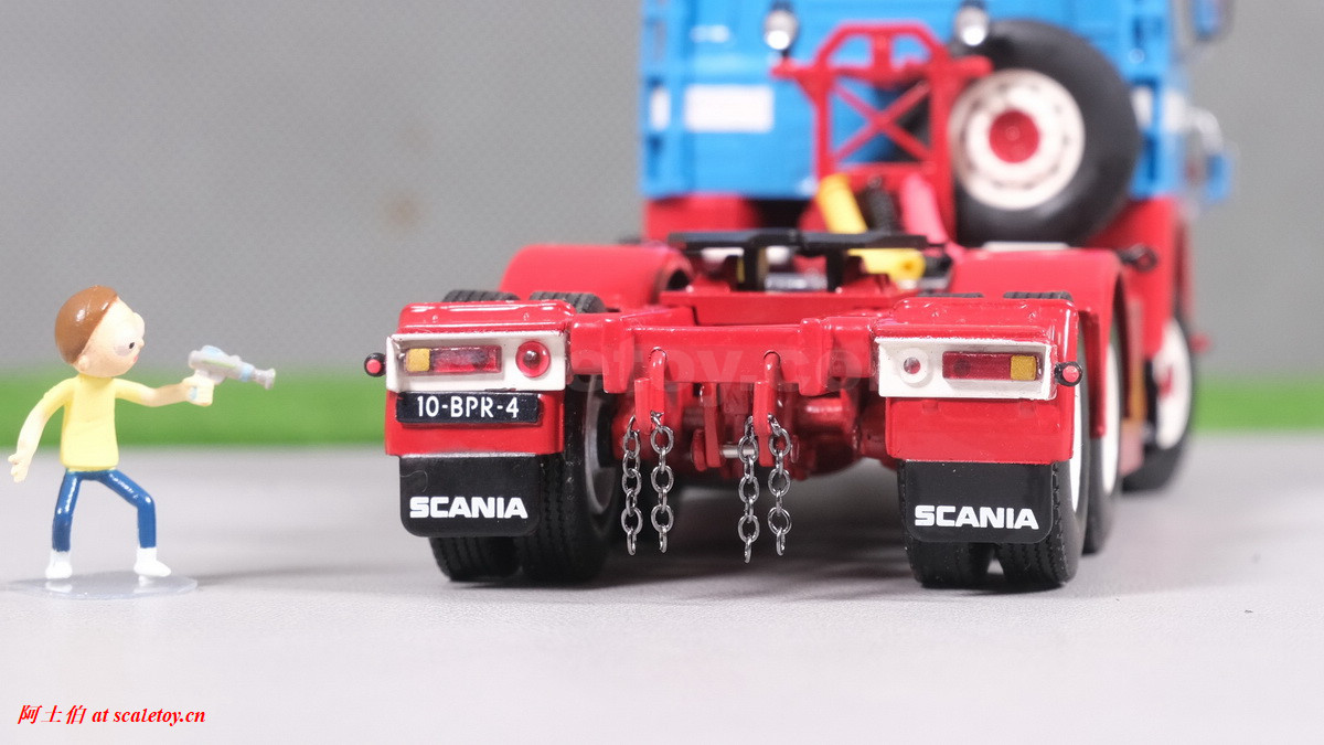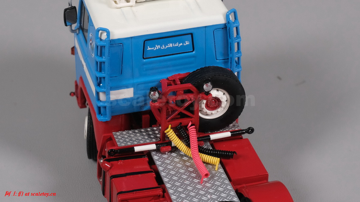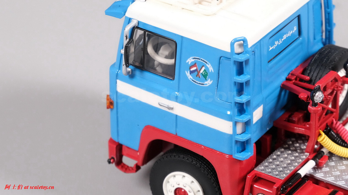 可以看到驾驶室内部的白色方向盘等内构,玻璃窗上的贴纸也是和真车一样的图案