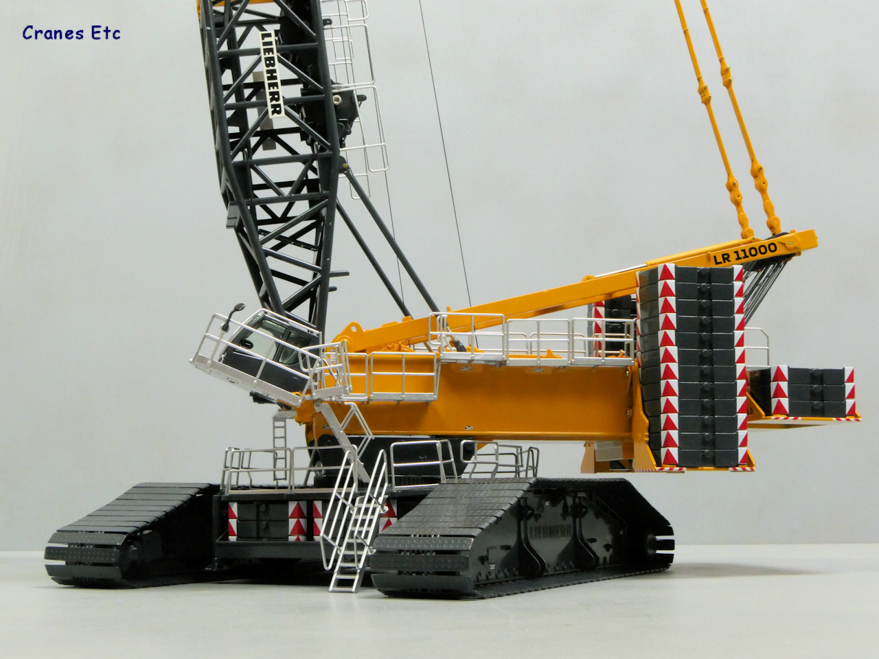 利勃海尔 LR 11000 履带式起重机最大起吊能力为11米半径下的1000吨。这款模型配备的是SL8F2工况,通常用于风电安装。