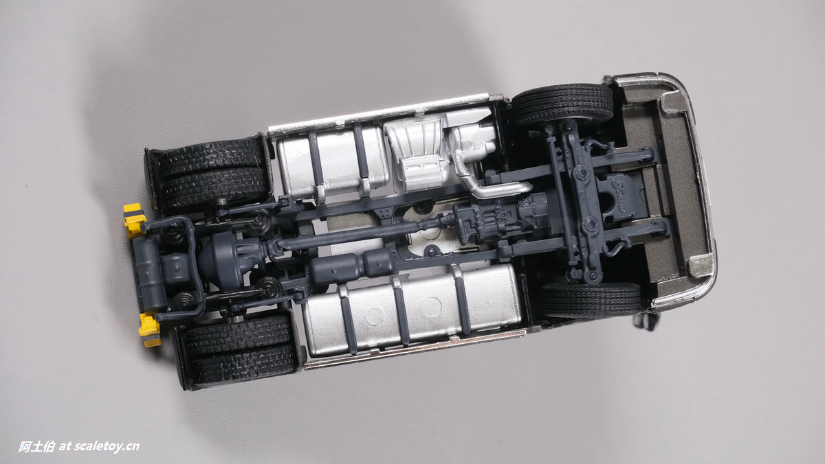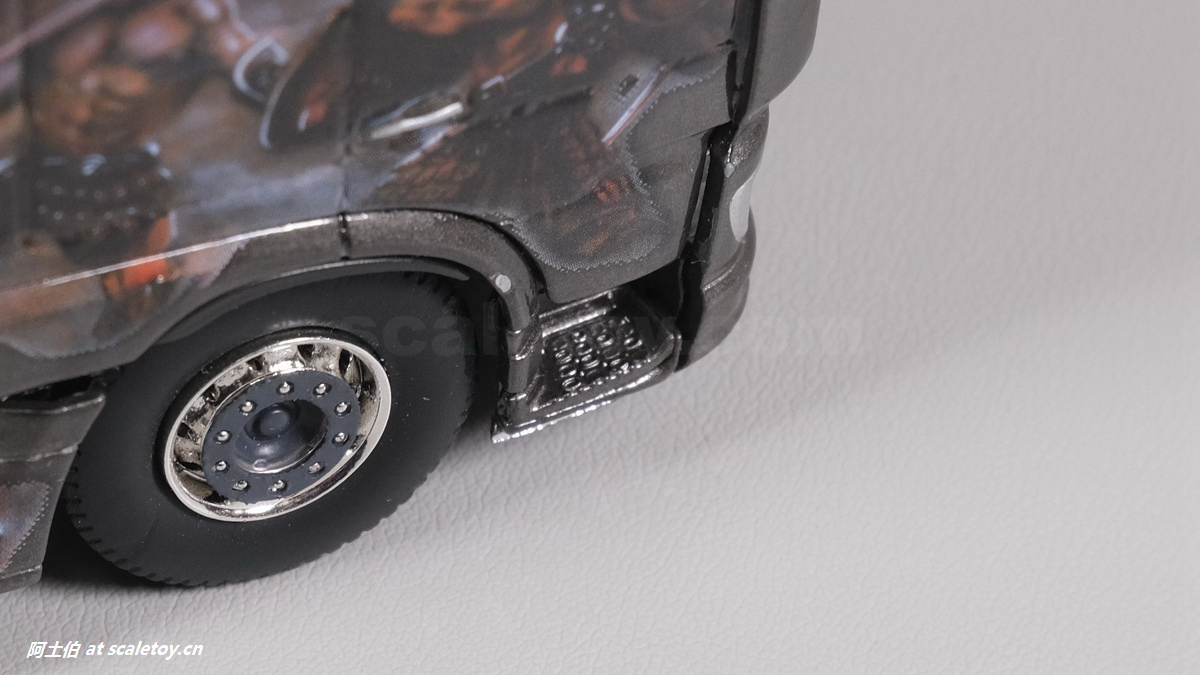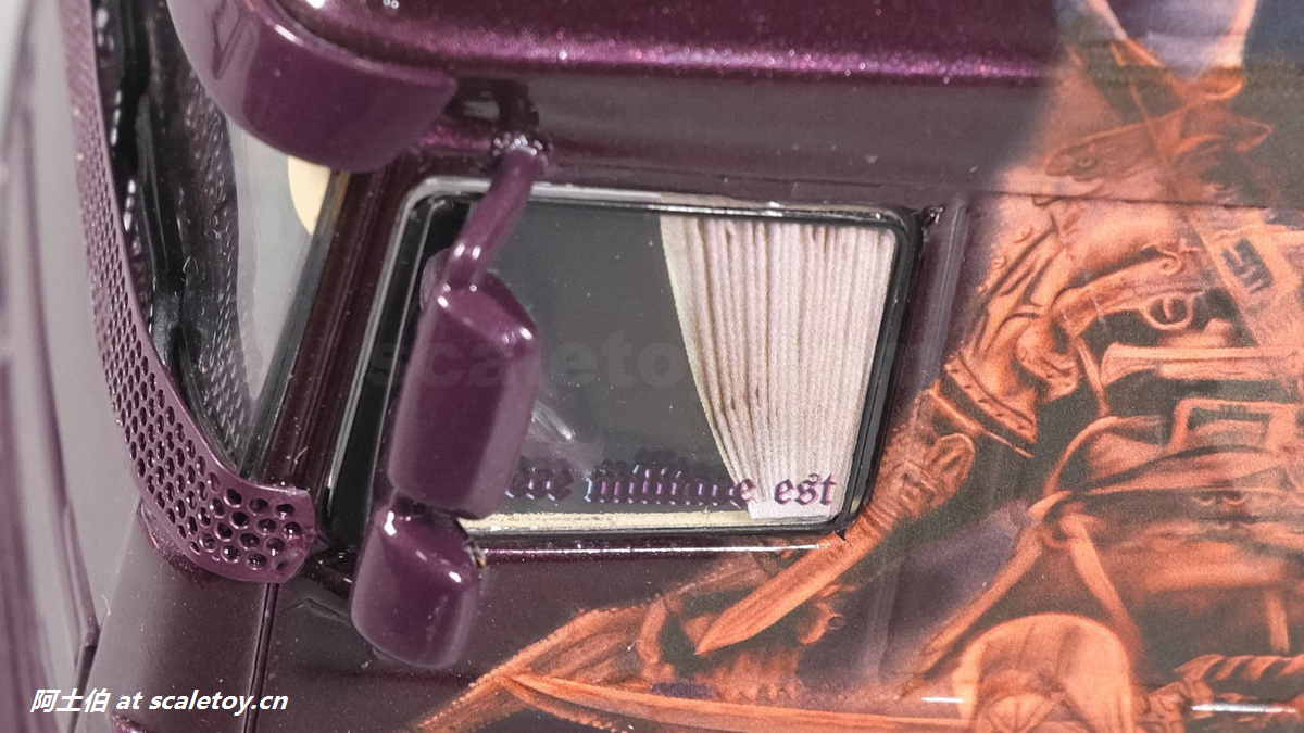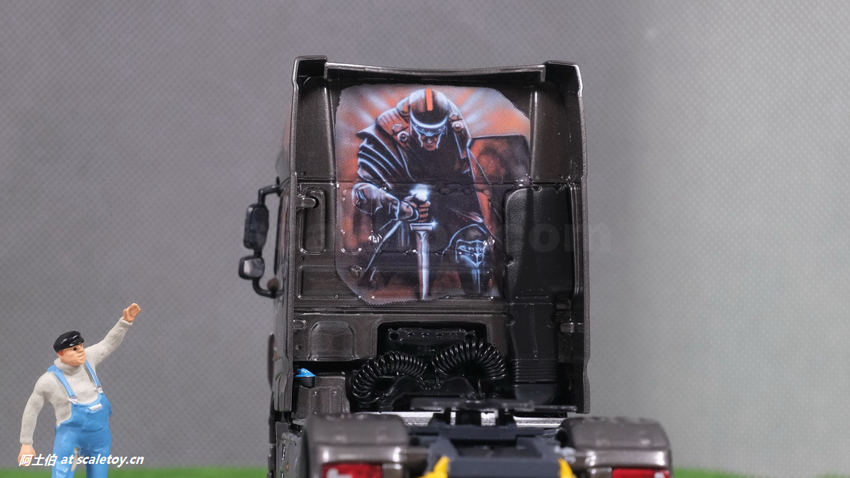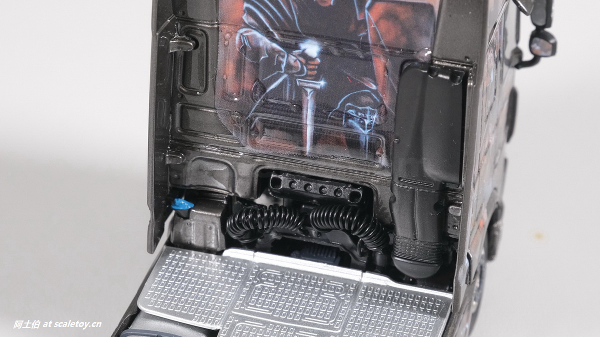 驾驶室内部基本是全黑的,没有分色,没有找到实车图片,不知道这个彩绘车内部实际有无图案?我推测应该有,以老外的玩车脾性,不太会到这台就没了。