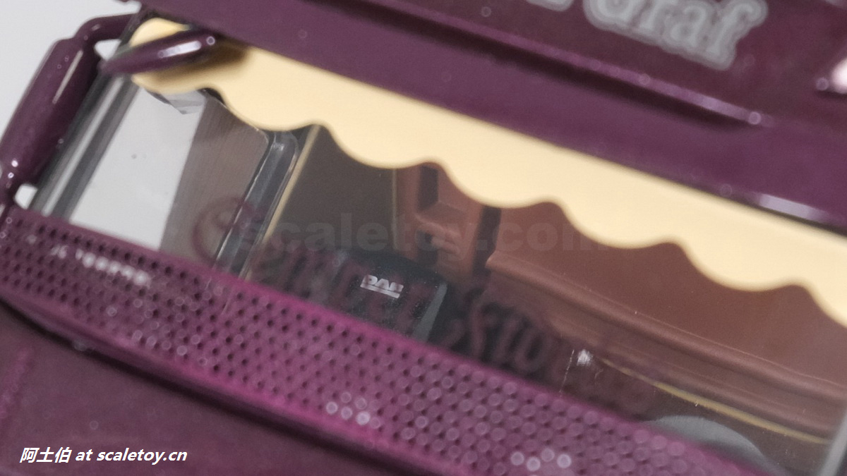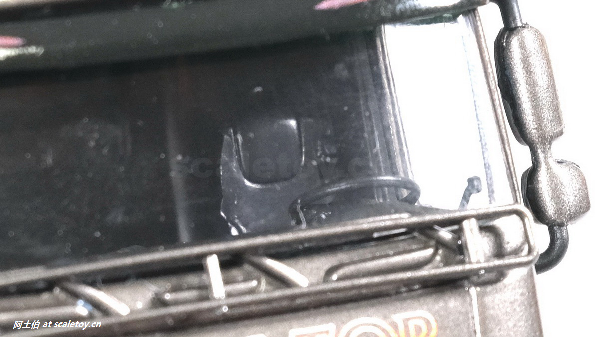 车牌水贴错位,就当工人的误差吧!不过说实话以前不多见,包括各牌子模型。但有个问题就是这个灯管实车是绕到车牌上面的