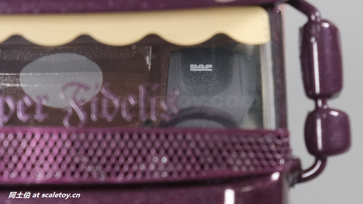 类比WSI的01-2930,包括前窗和侧窗的遮阳布帘(涂色表现)、座椅和内部的分色、座椅上的DAF文字、驾驶室内部后壁板上的图案、以及上铺的那个梯子结构,都有展现。