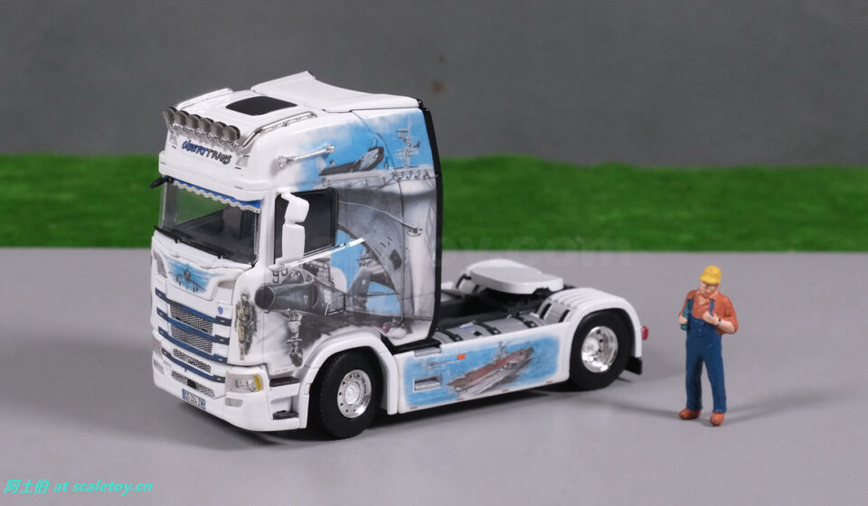 今天介绍的这款是在斯堪尼亚S系HIGHLINE CS20H 4X2拖头上,彩绘为法国海军宣传。