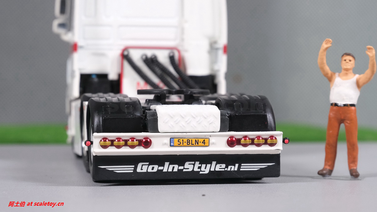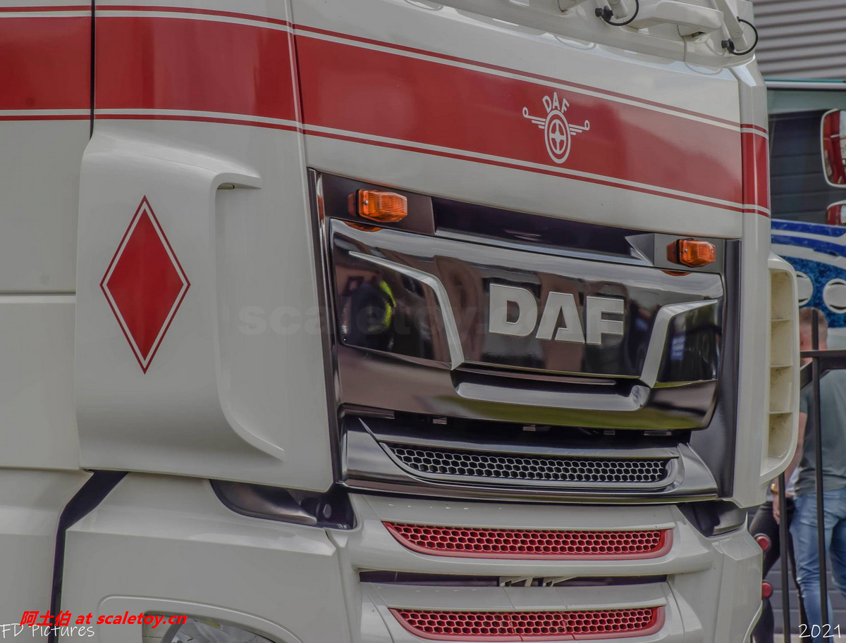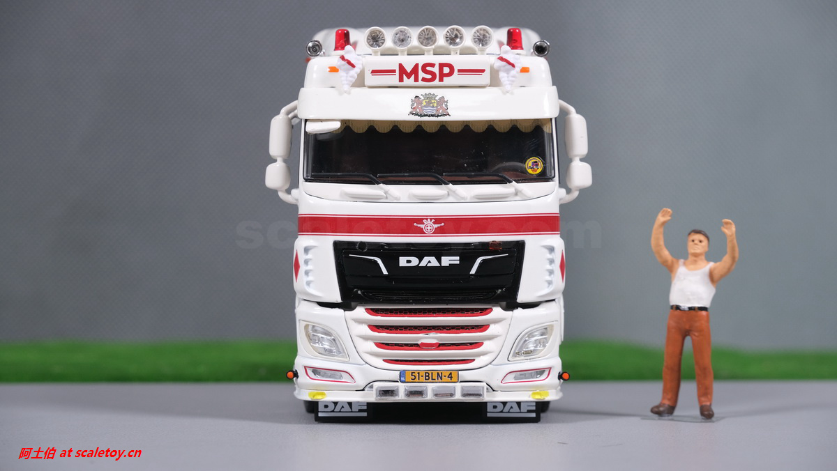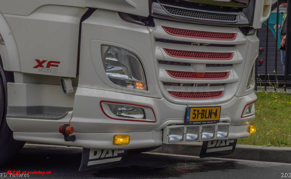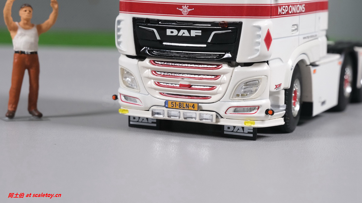 前脸,格栅的分色处理不错,立体感强,车牌清晰,下方加的大灯、黄色装饰灯、示廓灯、前挡泥板等细节都比较到位