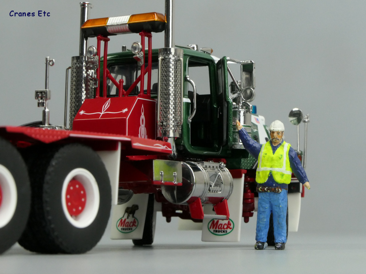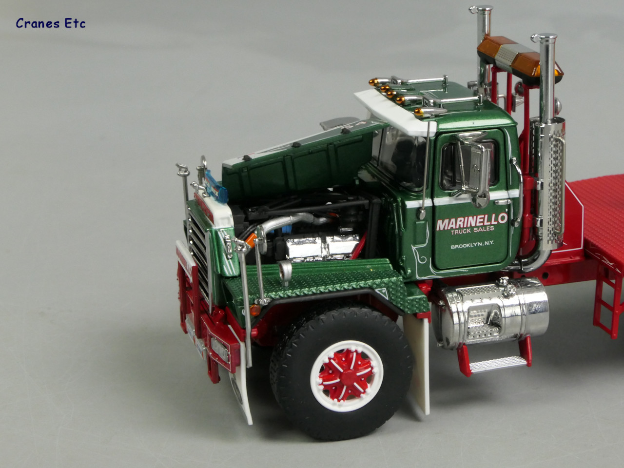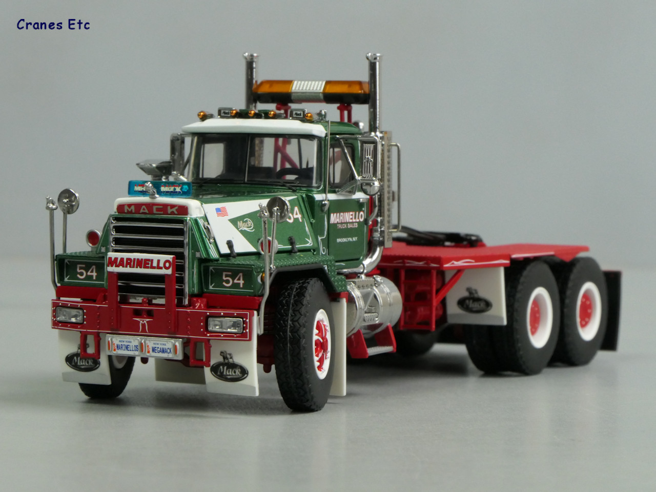 这款模型对应的是一台 Mack RD822SX Mega Mack 6×4 ,大概年代是1990.涂装是美国纽约的卡车经销商 Marinello Truck Sales。