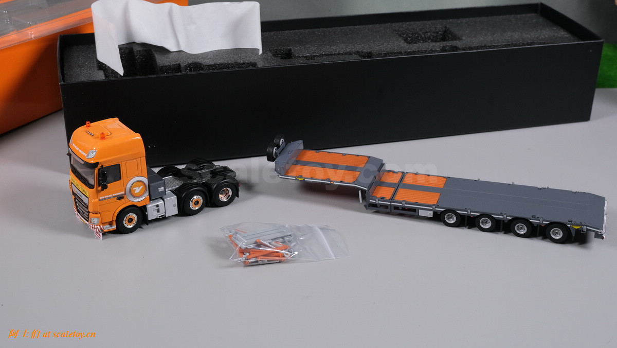 今天介绍的这台车是达夫的XF MY2017 6X2 TWINSTEER拖头,挂BROSHUIS四轴半低板,涂装是集团内的V.D. VLIST TWENTE