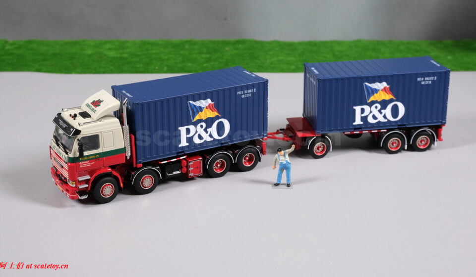 [WSI] classics: SCANIA 3 SERIES 8X2 TAG AXLE W 3X RIGED DRAWBAR CONTAINER COMBI – FA. JAC. FIJAN & ZN. + 2X 20FT CONTAINER P&O 经典车型:斯堪尼亚底盘及全挂集装箱挂车 荷兰FA. JAC. FIJAN & ZN.公司涂装
