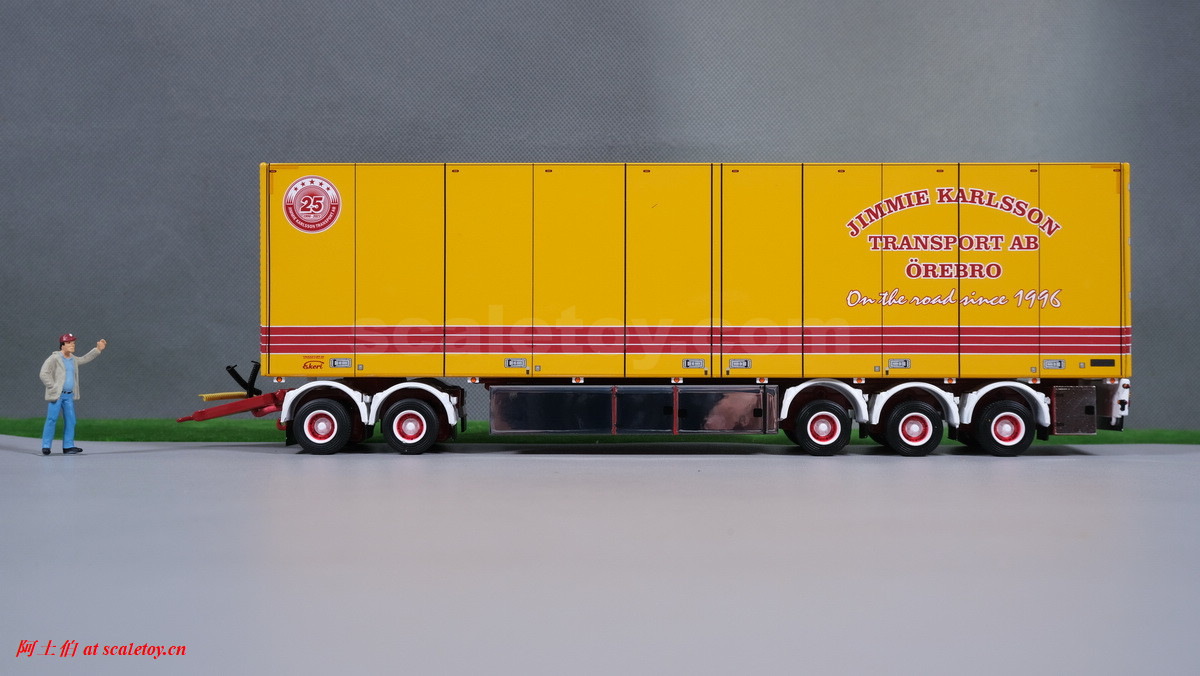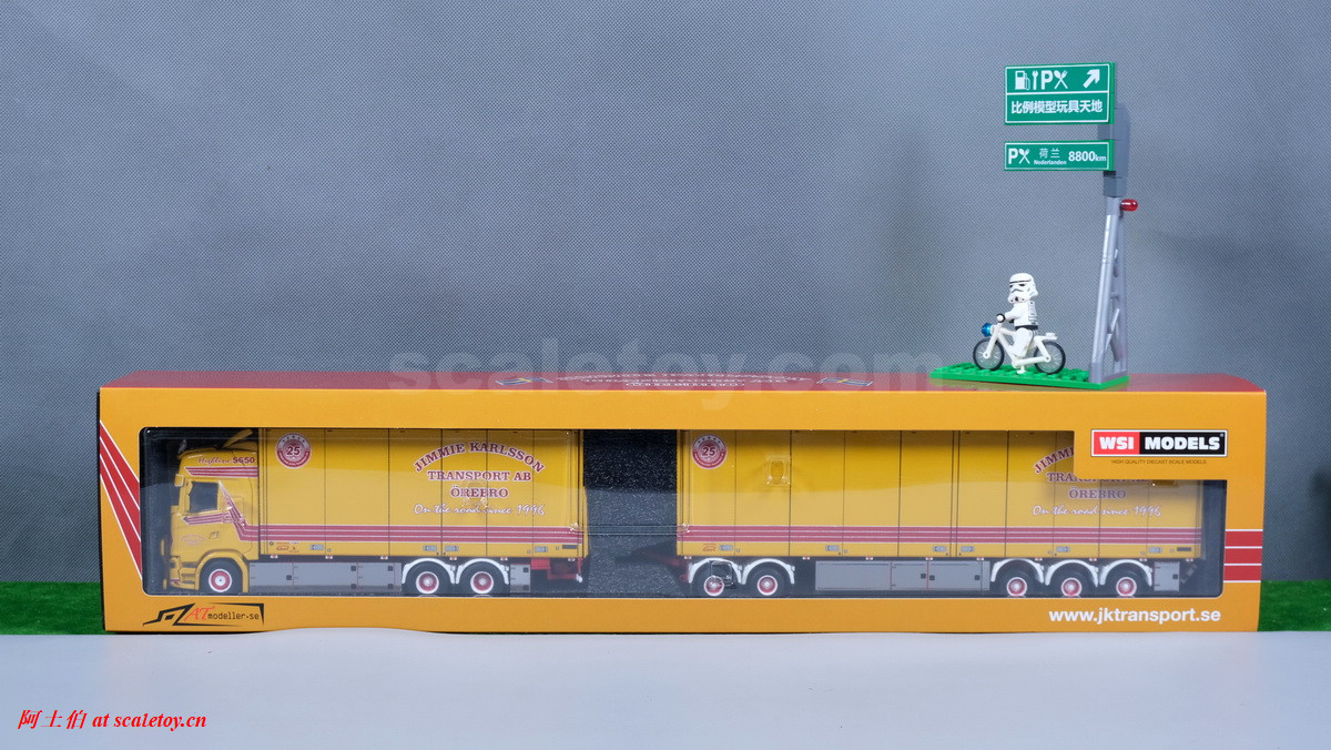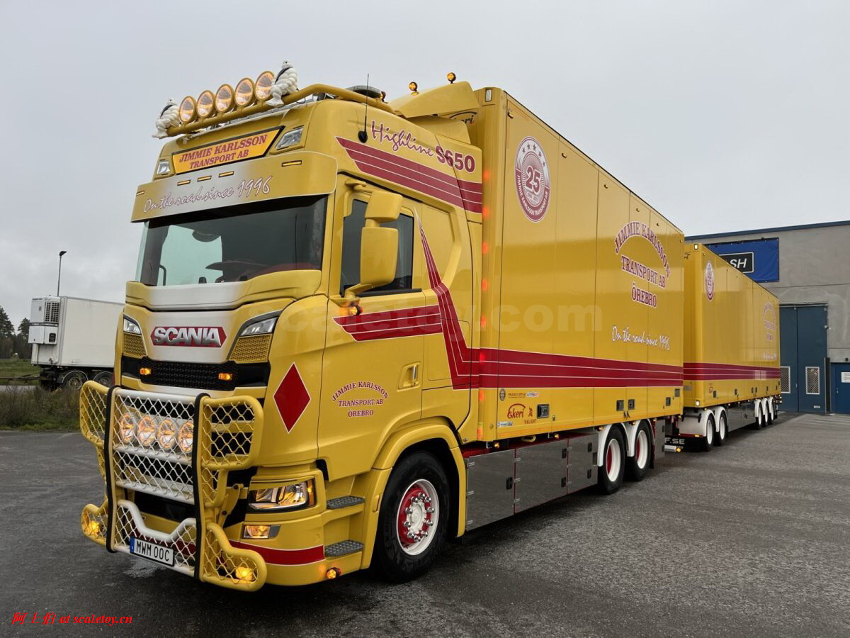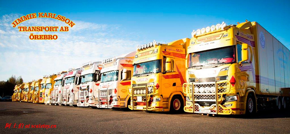 Jimmie Karlsson Transport AB 是一家瑞典的物流企业,由Jimmie Karlsson 于 1996 年购买的第一辆卡车——斯堪尼亚 R 142开始,为DHL提供物流服务,如今主要业务包括从Örebro Värmland Mälardalen出发的,到哥德堡, Östra Småland 和 Gotland 的运输线路。DHL甚至协助公司建造了处所。如今公司有16台长途卡车,1台配送卡车以及货物装卸的车辆和装备。公司总部位于瑞典的Örebro。基于和DHL的深入联系,公司车辆涂装有特别的一股DHL的味道: