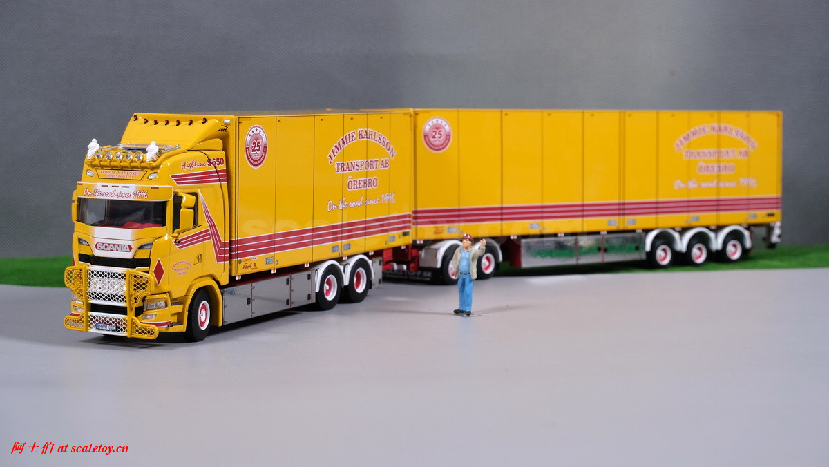 今天介绍的车是斯堪尼亚S系HIGHLINE 6X2 TAG AXLE底盘的厢式货车加挂全挂厢式货车,