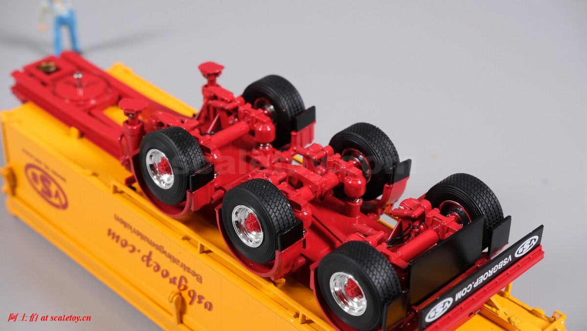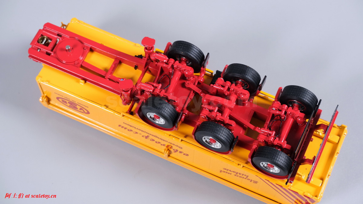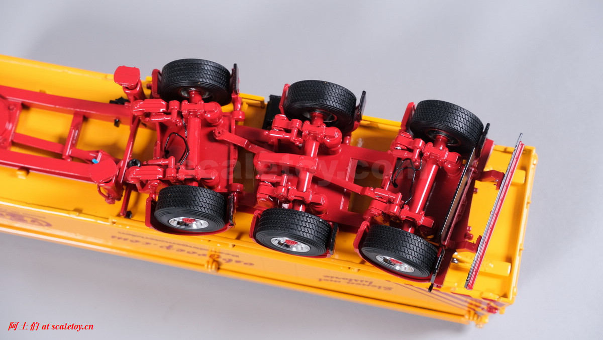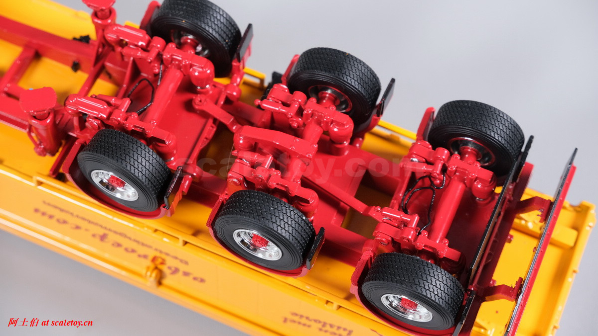 底盘,第1、3轴用硬连杆拉着转向联动,三轴都有弹簧避震