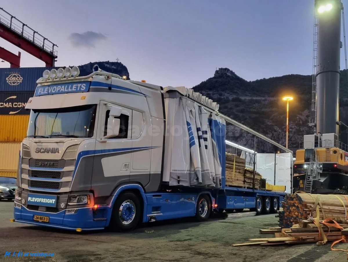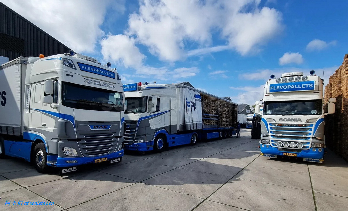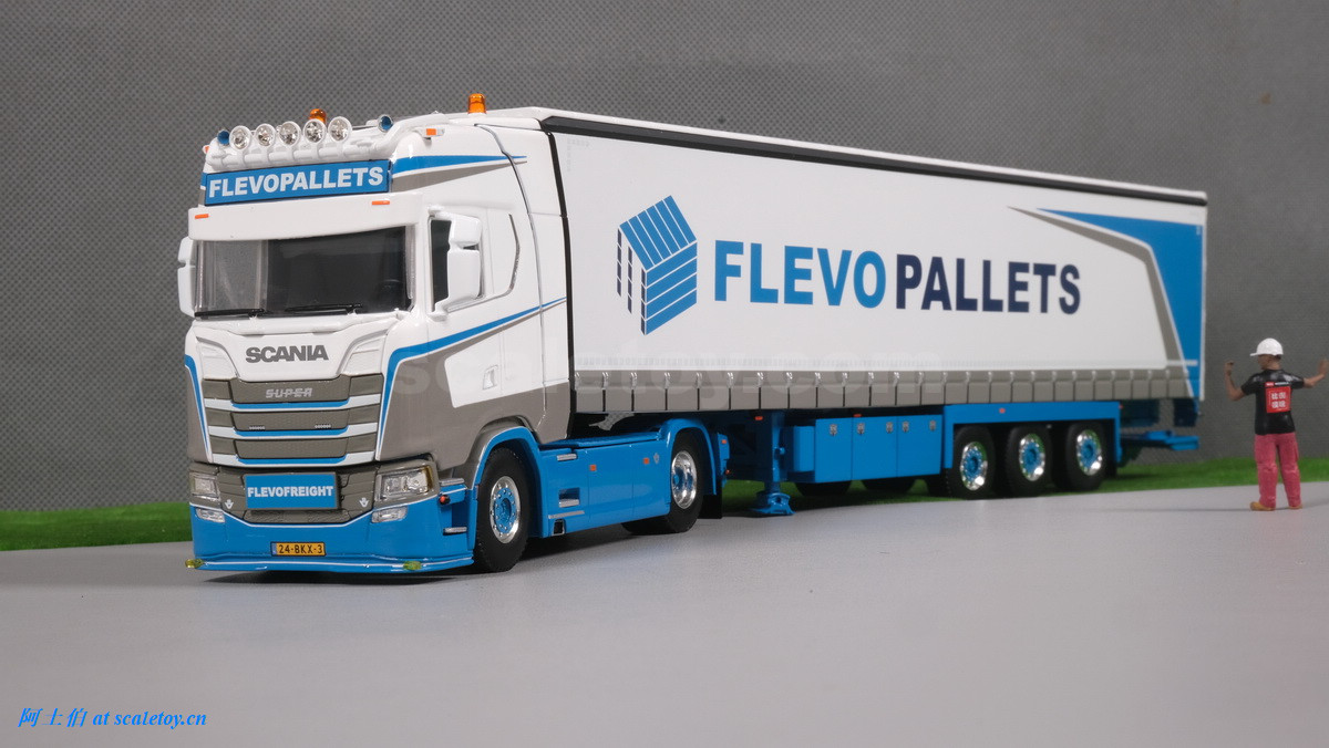 [WSI] SCANIA S HIGHLINE CS20H 4X2 with 3X CURTAINSIDE TRAILER – FLEVOPALLETS 斯堪尼亚拖头挂侧帘挂车 荷兰FLEVOPALLETS公司涂装