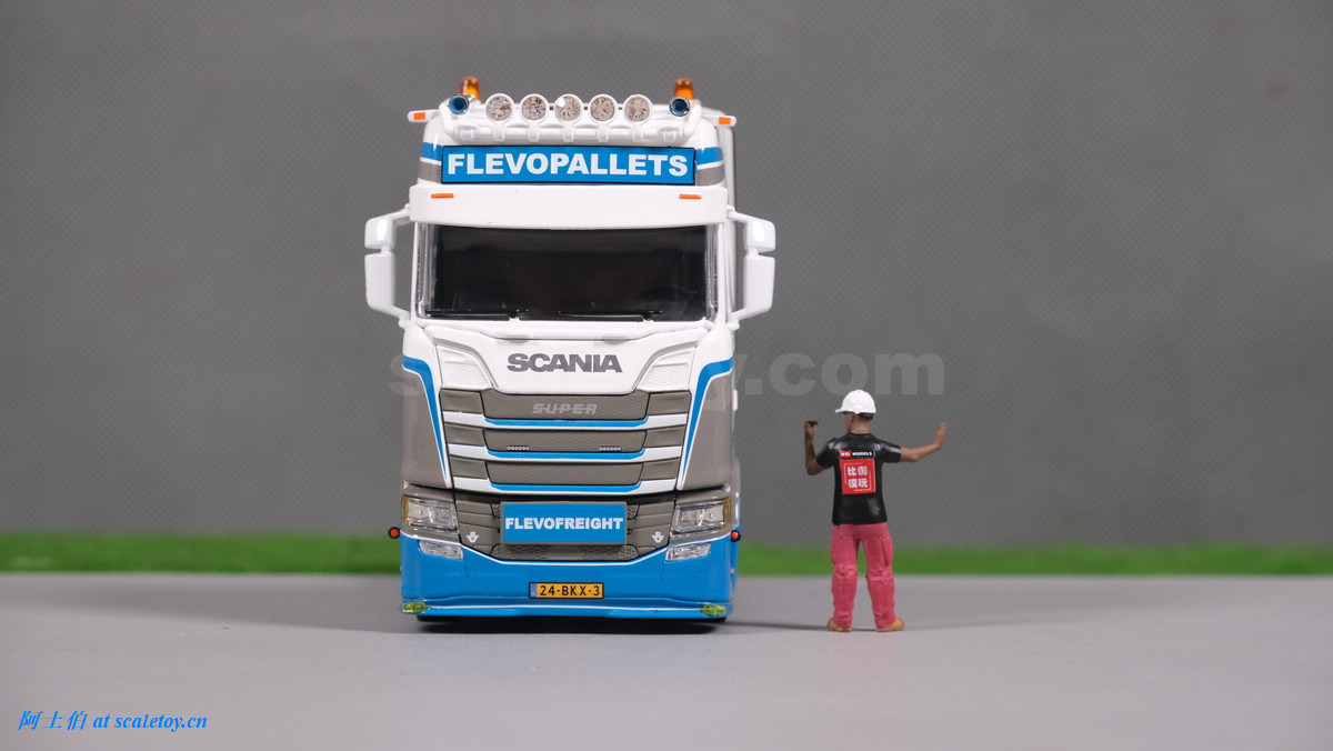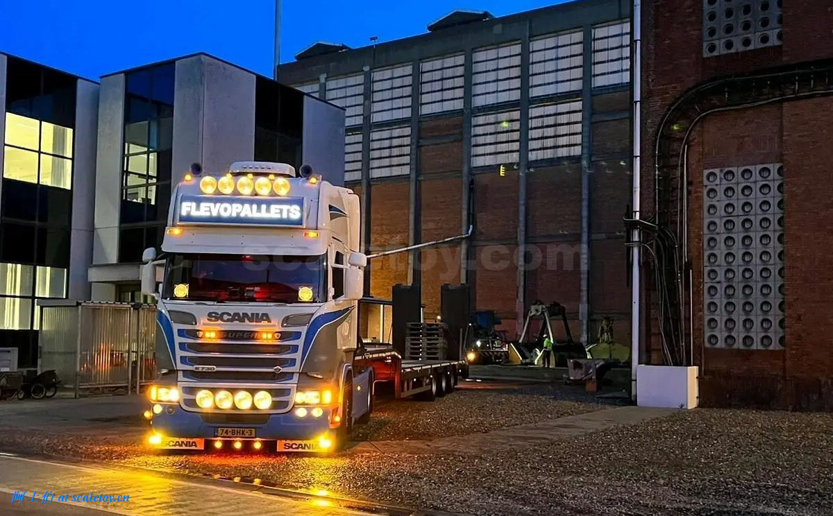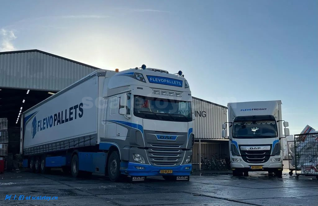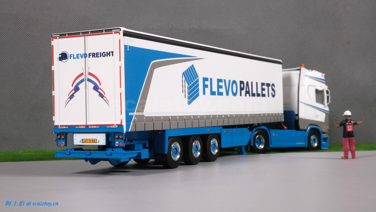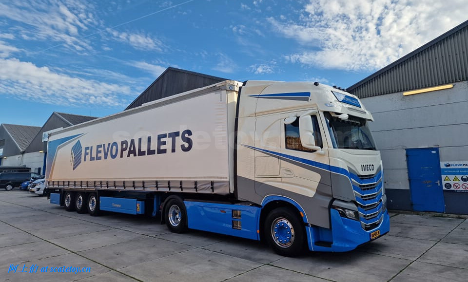 拖头,额头是FLEVOPALLETS,前脸的牌子写的是FLEVOFREIGHT字样,两不耽误。