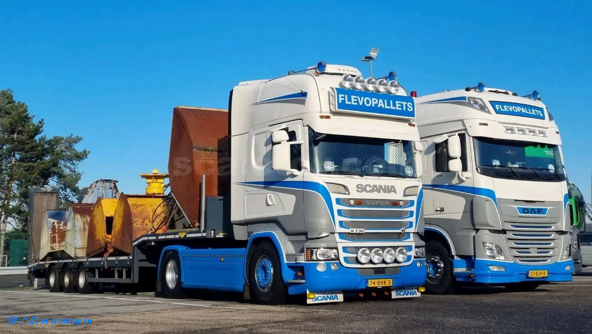 拖头,涂装风格完全一样,不过这个DAF头的前脸上没有FLEVOFREIGHT的铭牌