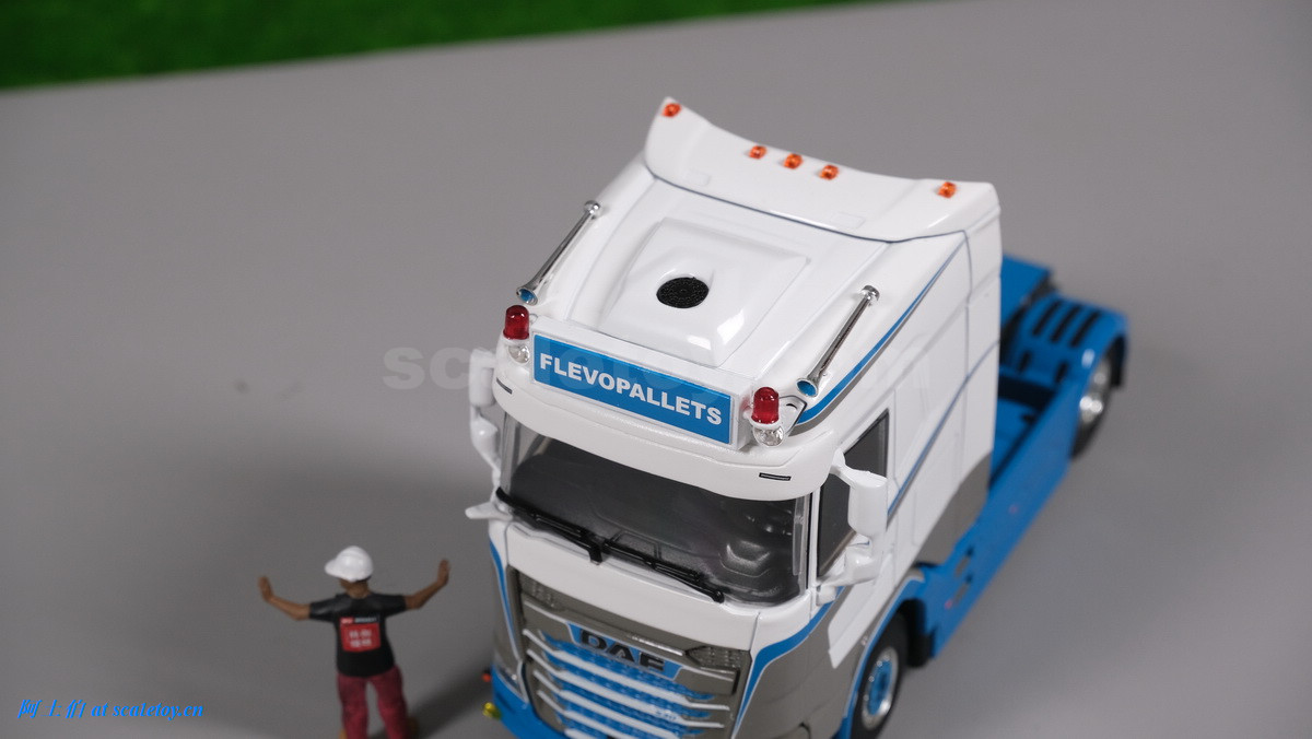 驾驶室背后,有凹凸上色的DAF字样,以及独立的上灯条